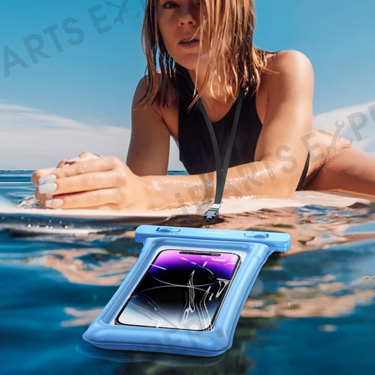 USAMS US-YD011 Waterproof Phone Pouch Universal 7-inch Waterproof Case Dry Bag IPX8 10m Underwater Phone Protector with Lanyard - Blue