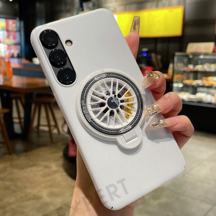 VOERO For Samsung Galaxy S24 Case Rotating Gyro Kickstand Phone Cover Lens Protector - White