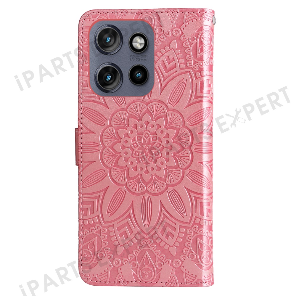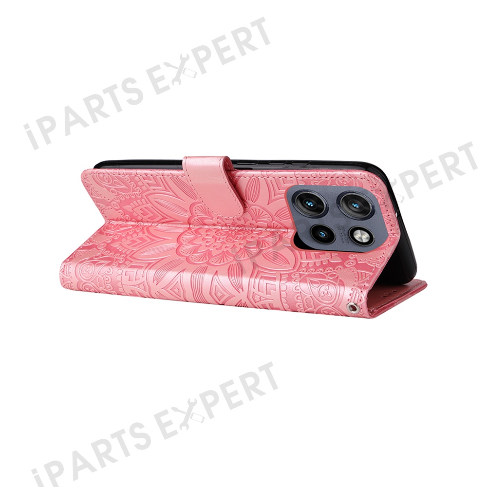 Wallet Case for Motorola Edge 60 Neo 5G / Edge 50 Neo 5G / Moto S50 5G / ThinkPhone 25 5G Leather Phone Cover Sunflower Imprint - Pink