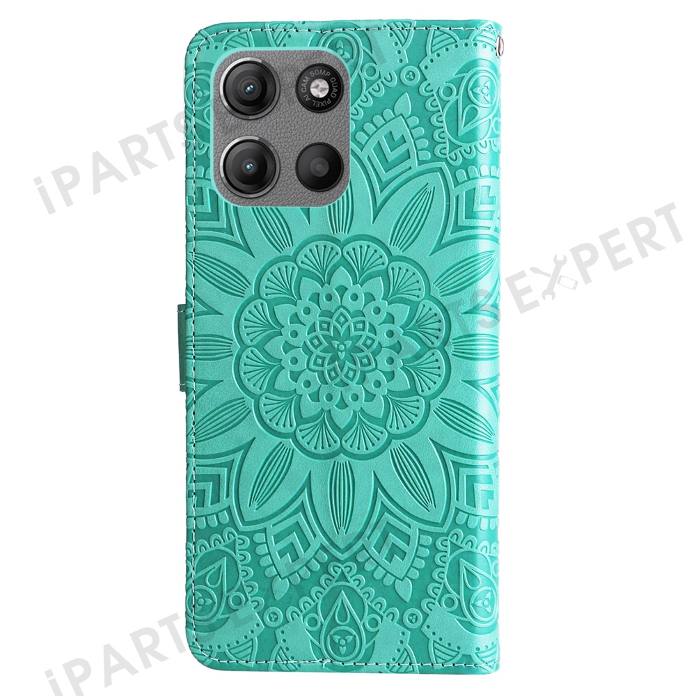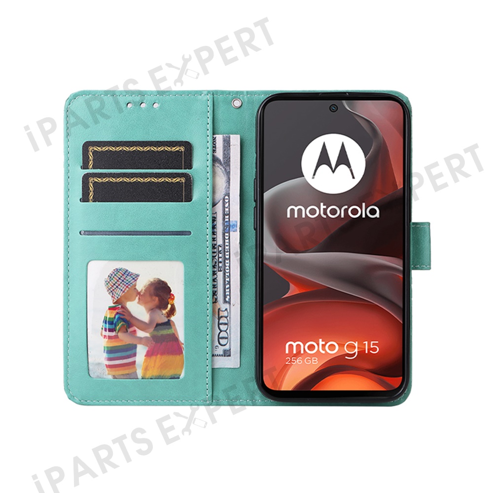 Wallet Case for Motorola Moto G15 4G / G15 Power 4G Leather Phone Cover Sunflower Imprint - Green