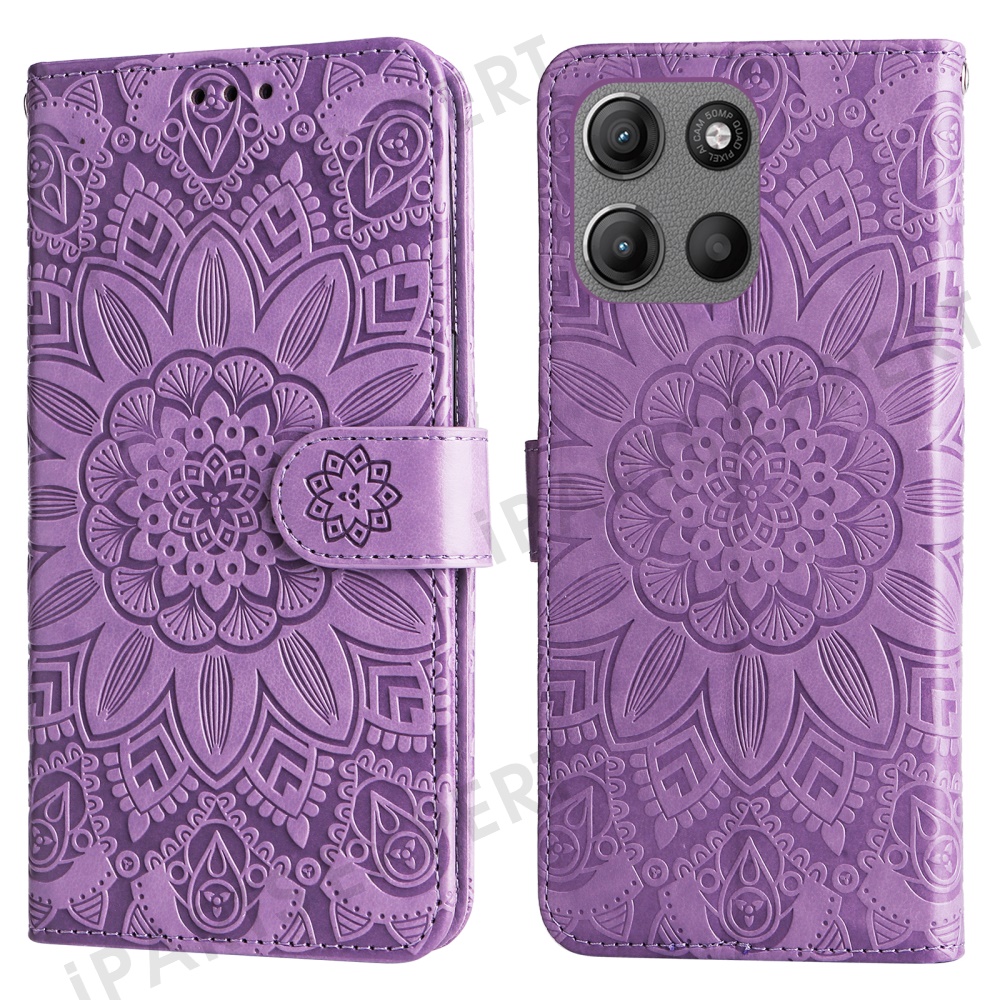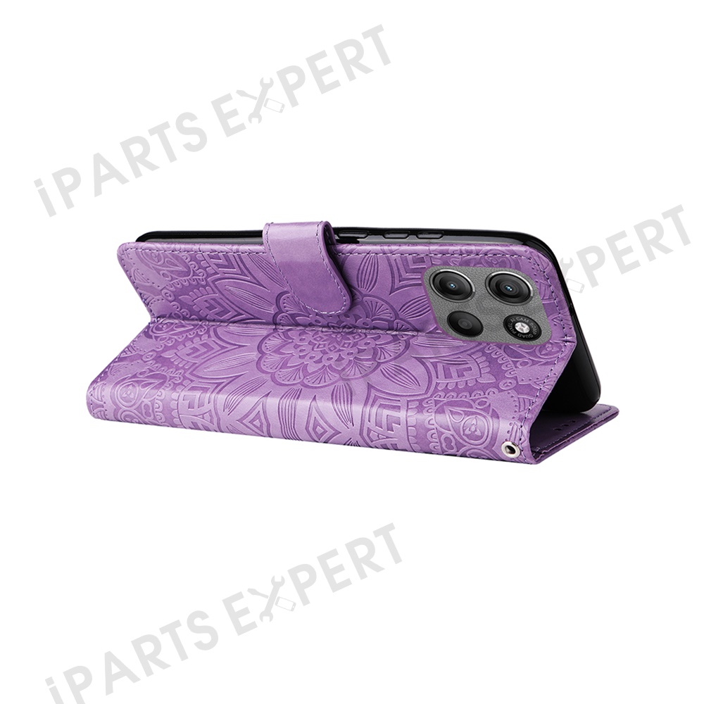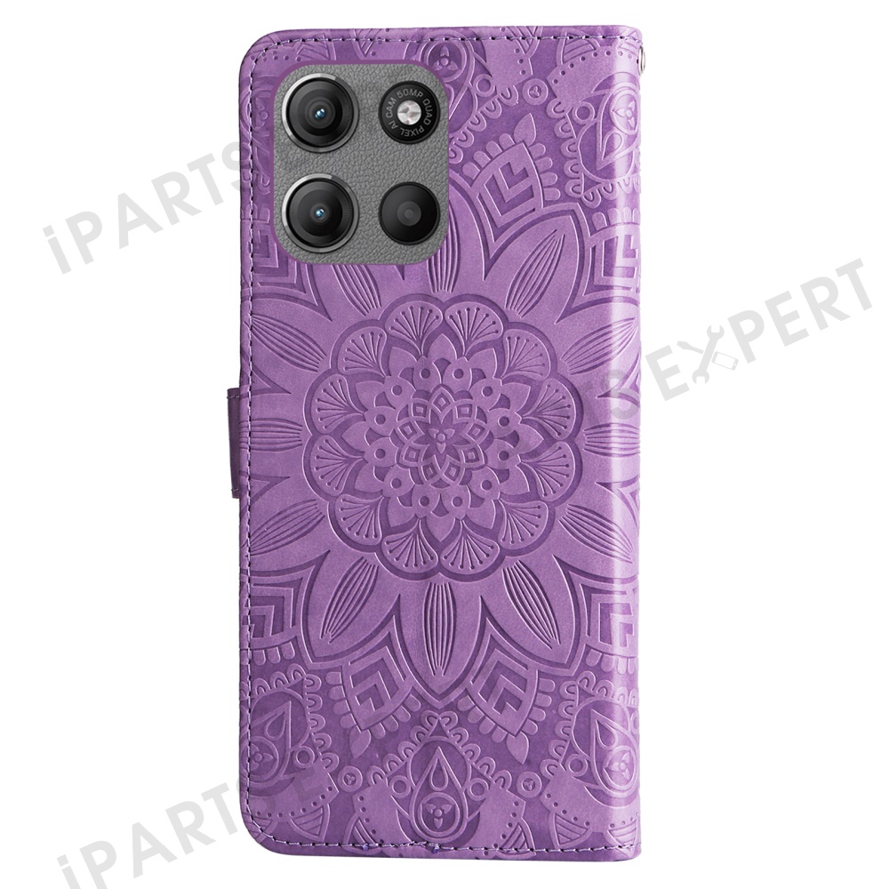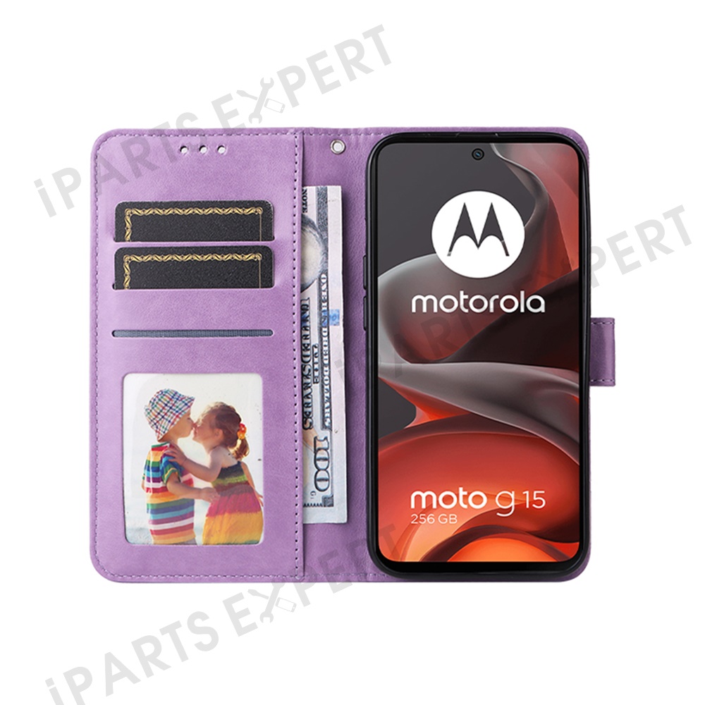 Wallet Case for Motorola Moto G15 4G / G15 Power 4G Leather Phone Cover Sunflower Imprint - Purple
