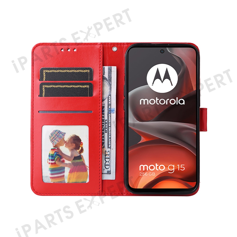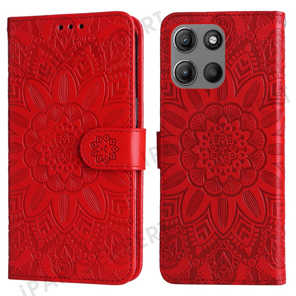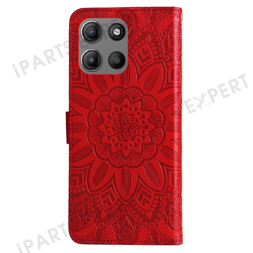 Wallet Case for Motorola Moto G15 4G / G15 Power 4G Leather Phone Cover Sunflower Imprint - Red