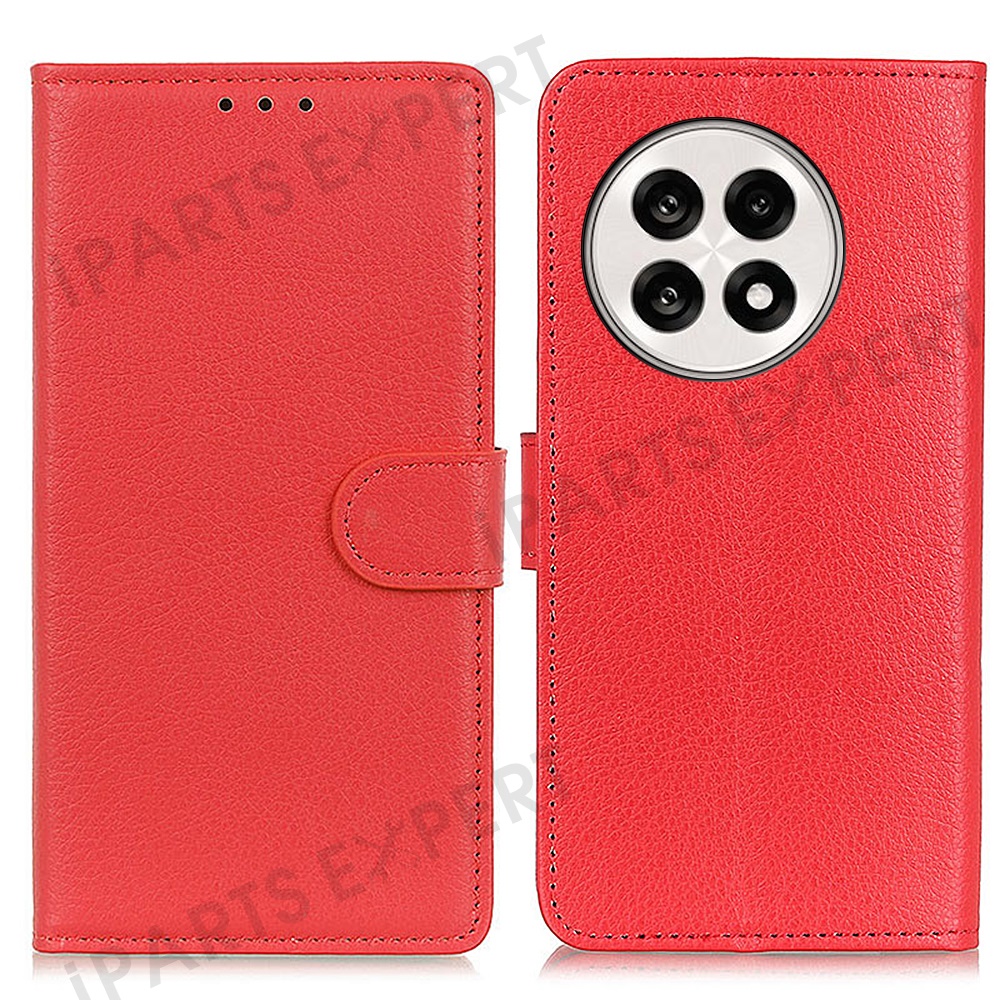 Wallet Case For OnePlus 13R 5G / Ace 5 5G / Ace 5 Pro 5G PU Leather Phone Cover Litchi Texture - Red