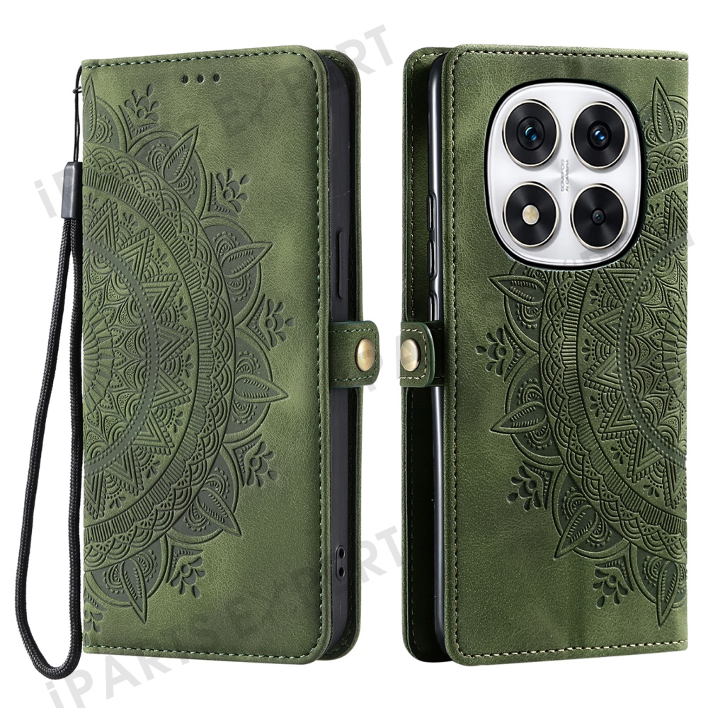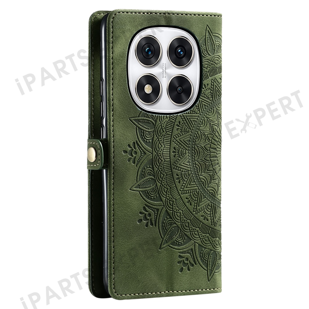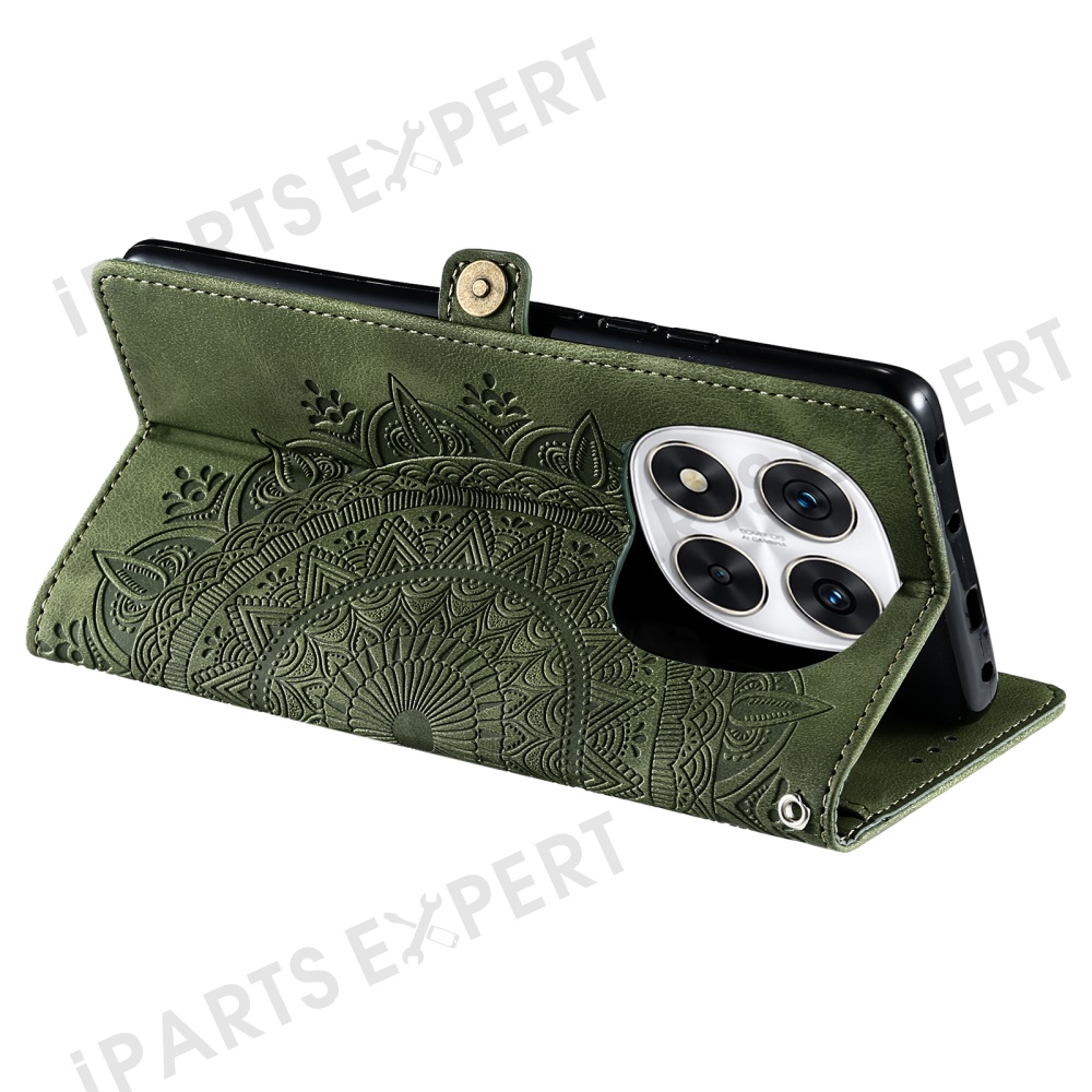 Wallet Case for Xiaomi Redmi Note 14 Pro+ 5G / 14 Pro 5G / Poco X7 5G Leather Phone Cover Skin Feel Totem Imprinted - Blackish Green