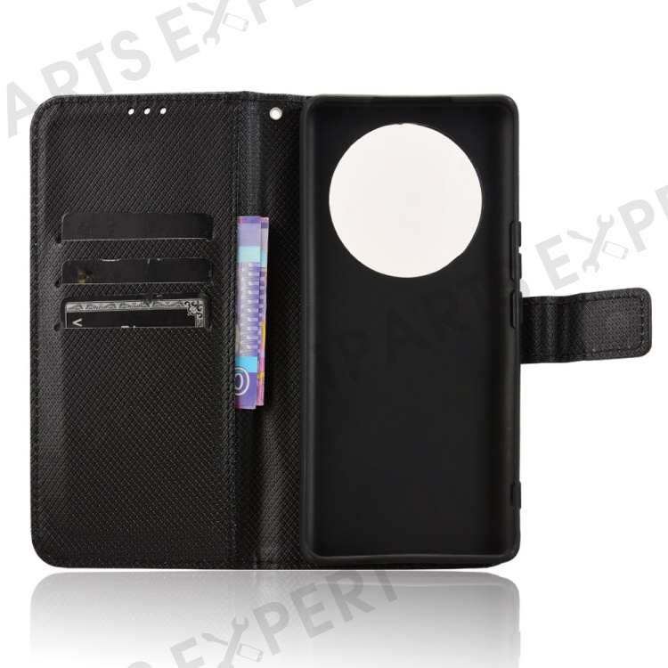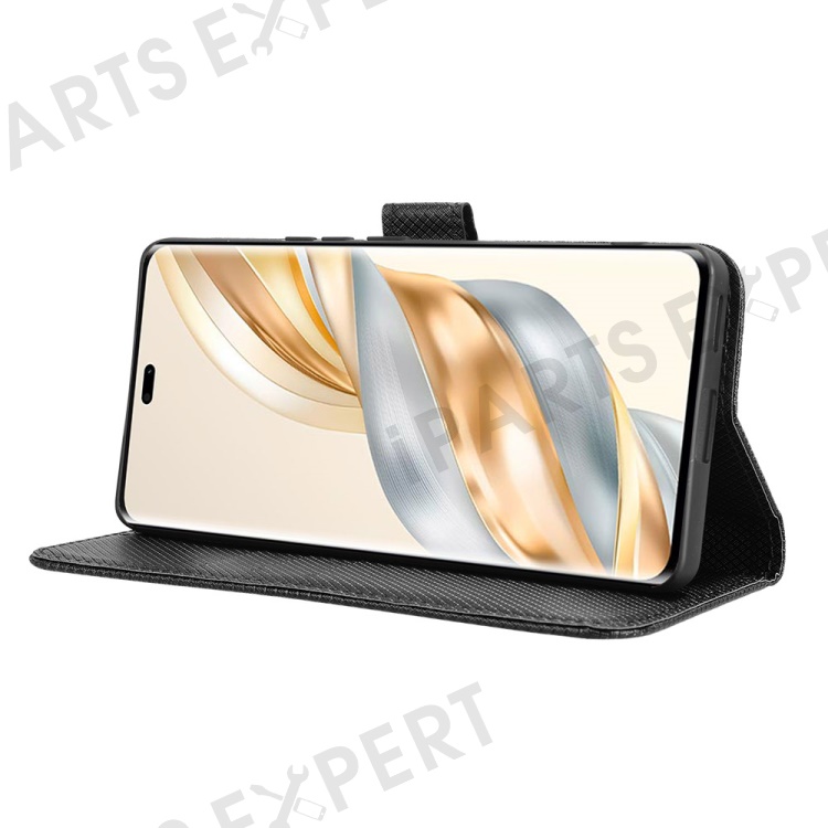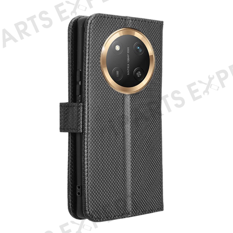 Wallet Phone Case for Honor Magic7 Lite 5G / X9c 5G / X60 Pro 5G PU Leather Diamond Texture Cover - Black