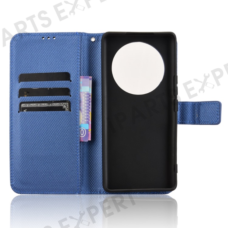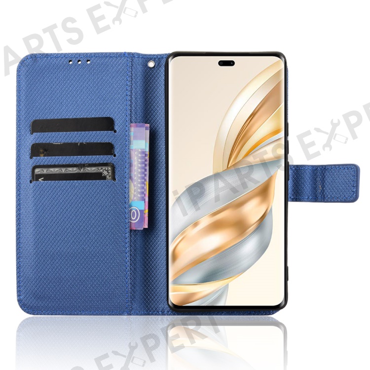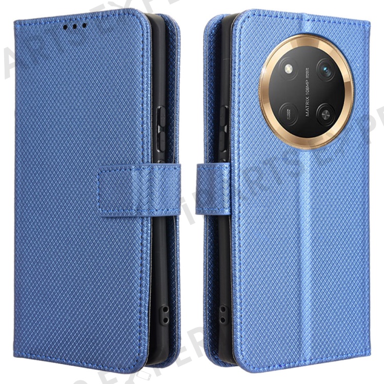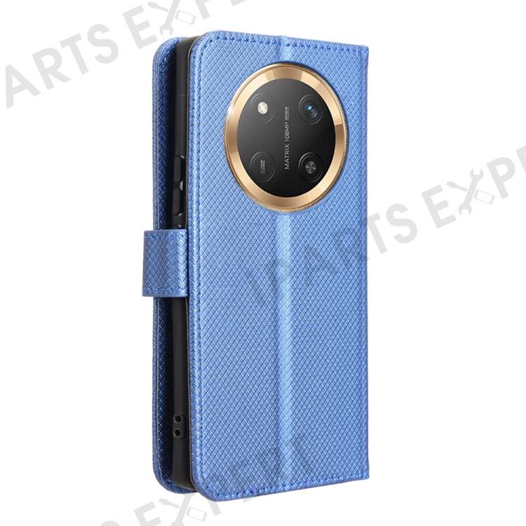 Wallet Phone Case for Honor Magic7 Lite 5G / X9c 5G / X60 Pro 5G PU Leather Diamond Texture Cover - Blue