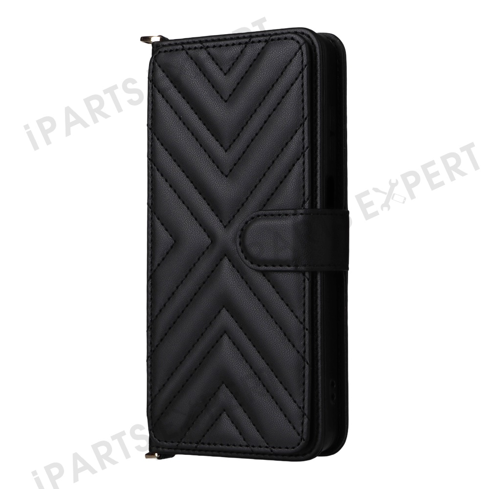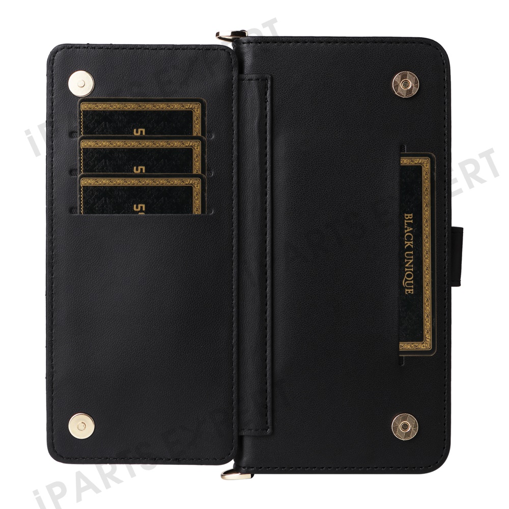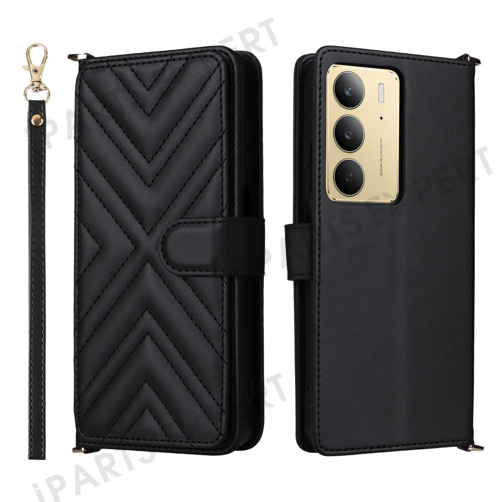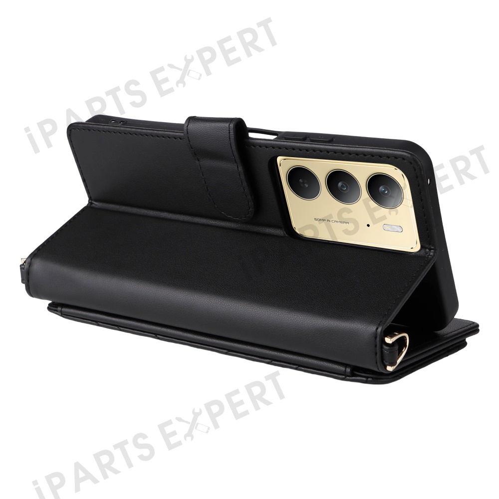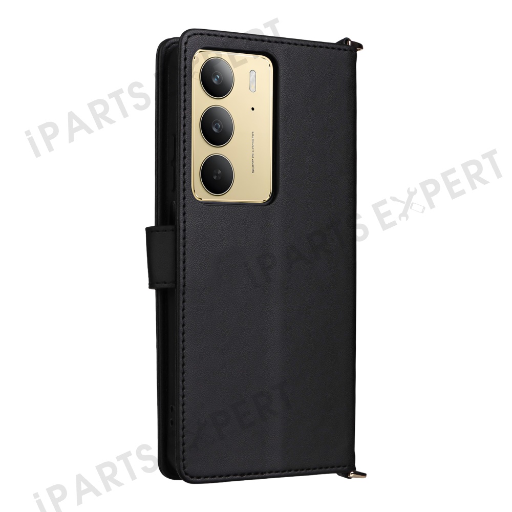 Wallet Phone Case for Realme 14x 5G / V60 Pro 5G / C75 4G Leather Phone Cover with Shoulder / Wrist Strap- Black