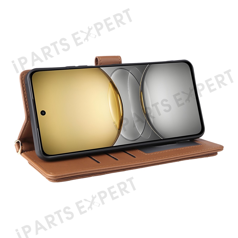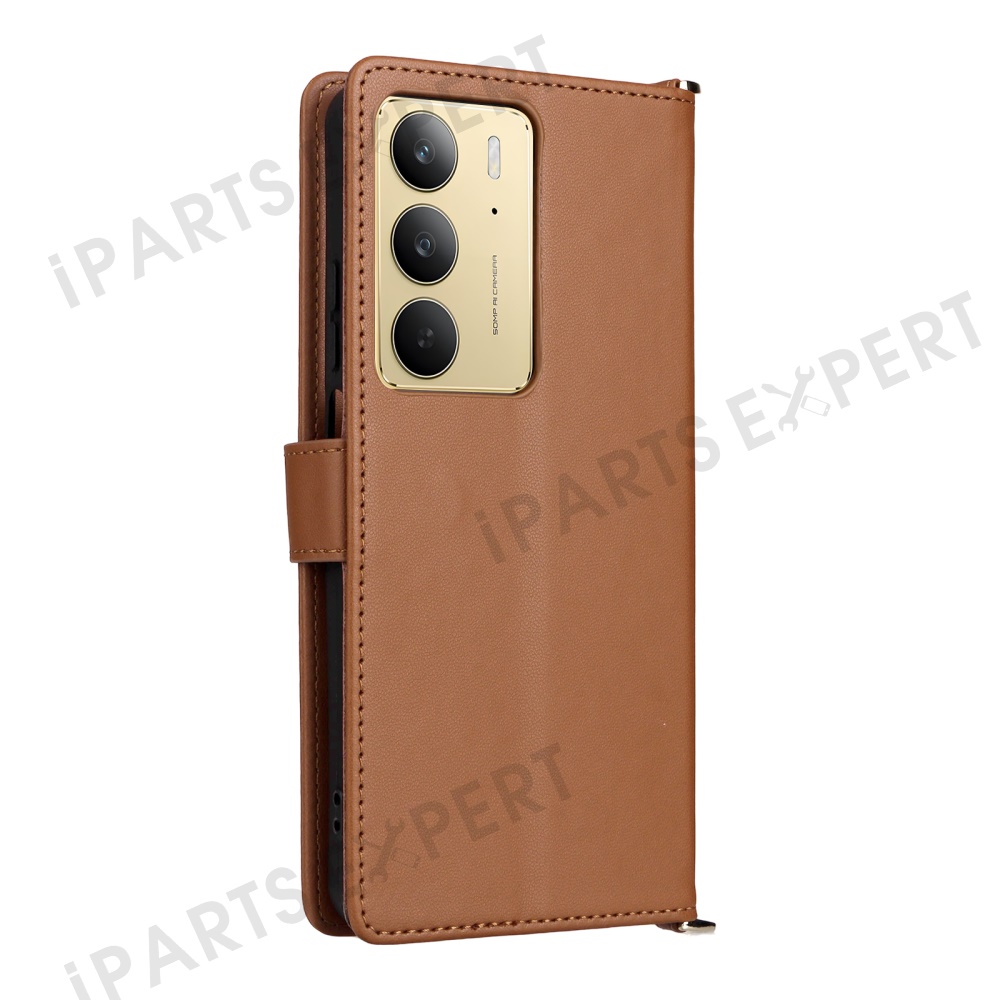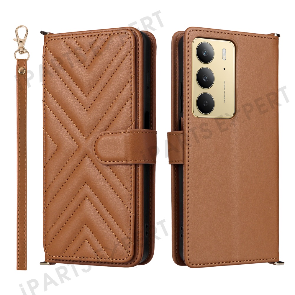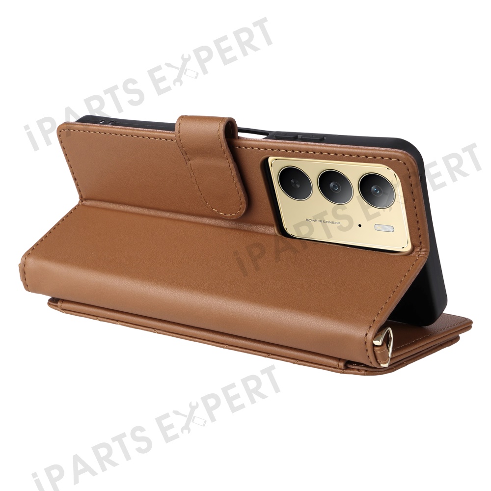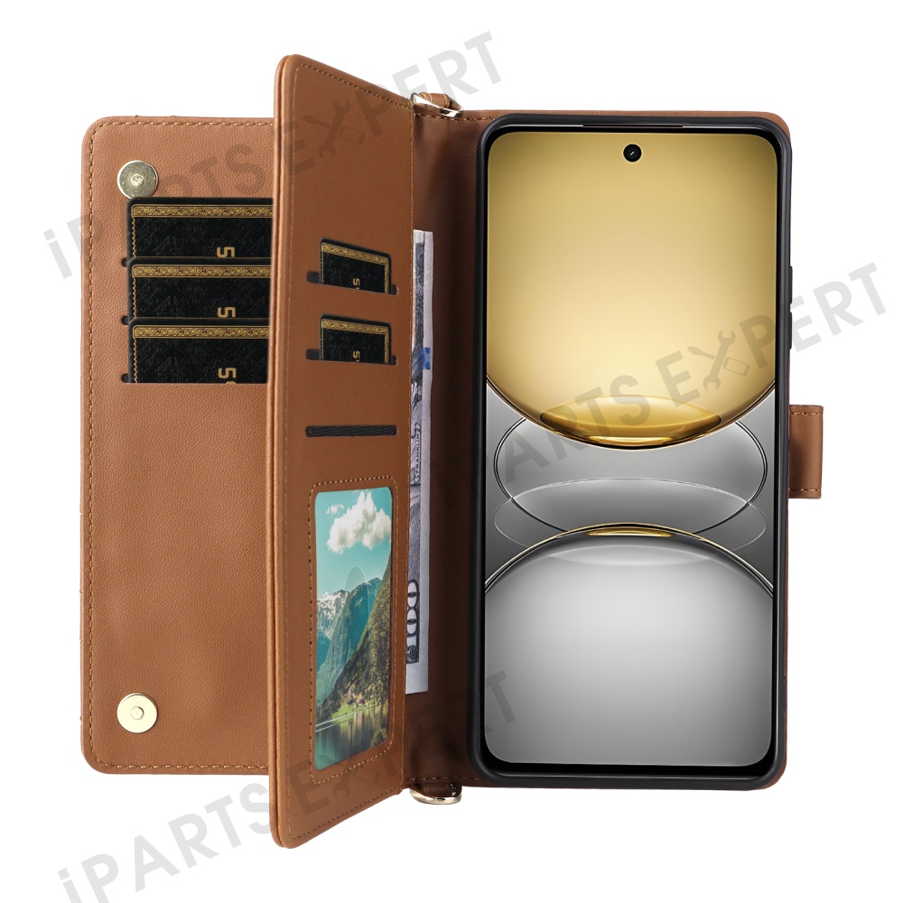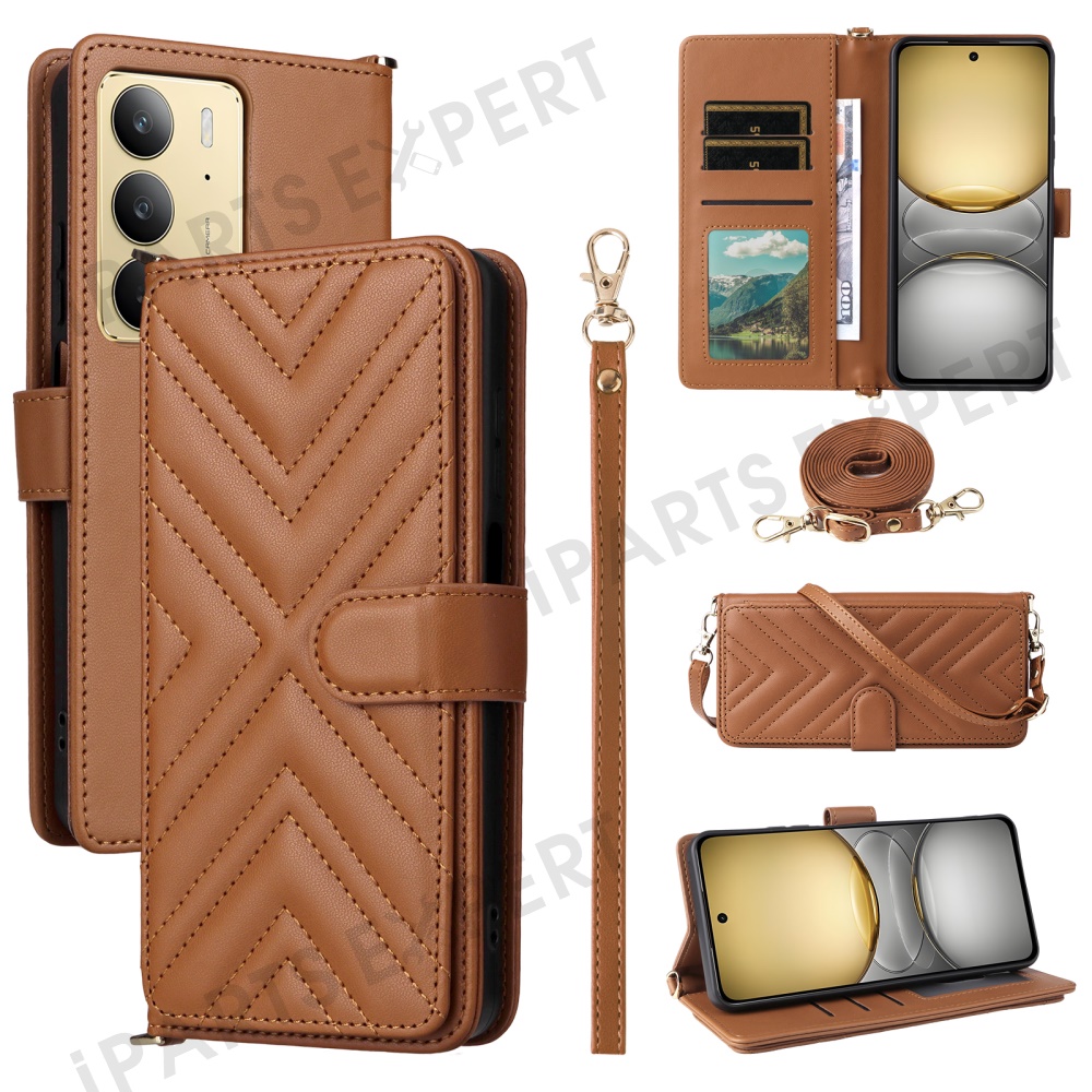 Wallet Phone Case for Realme 14x 5G / V60 Pro 5G / C75 4G Leather Phone Cover with Shoulder / Wrist Strap - Brown