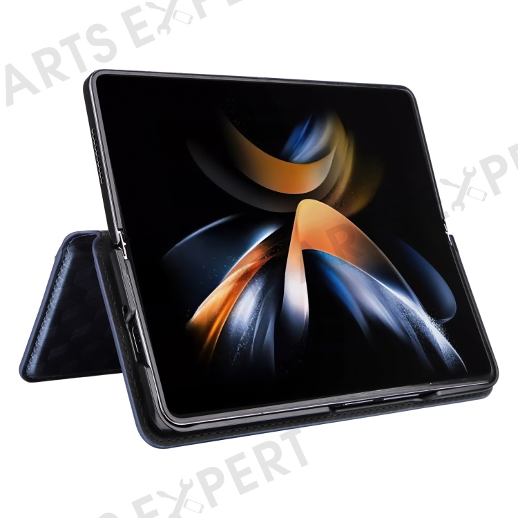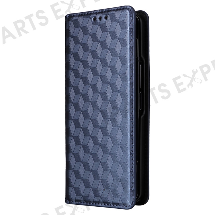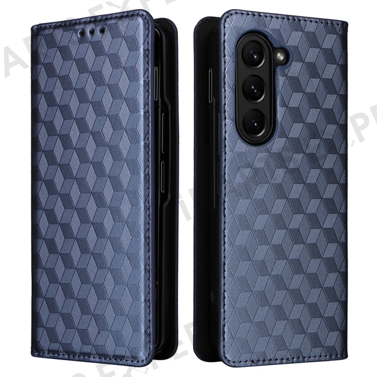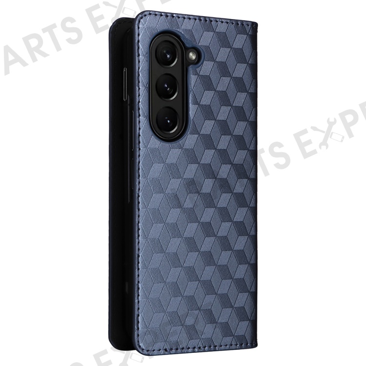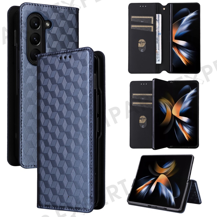 Wallet Phone Case for Samsung Galaxy Z Fold5 5G Rhombus Imprinted PU Leather Phone Cover - Blue