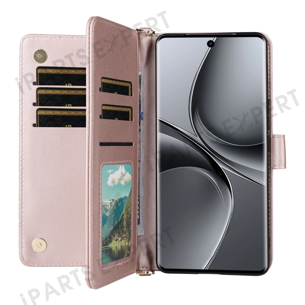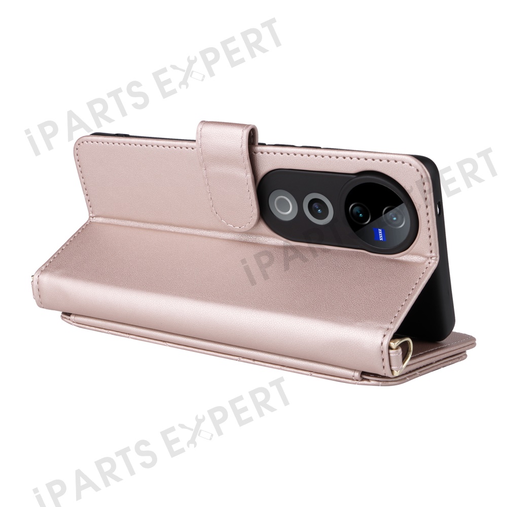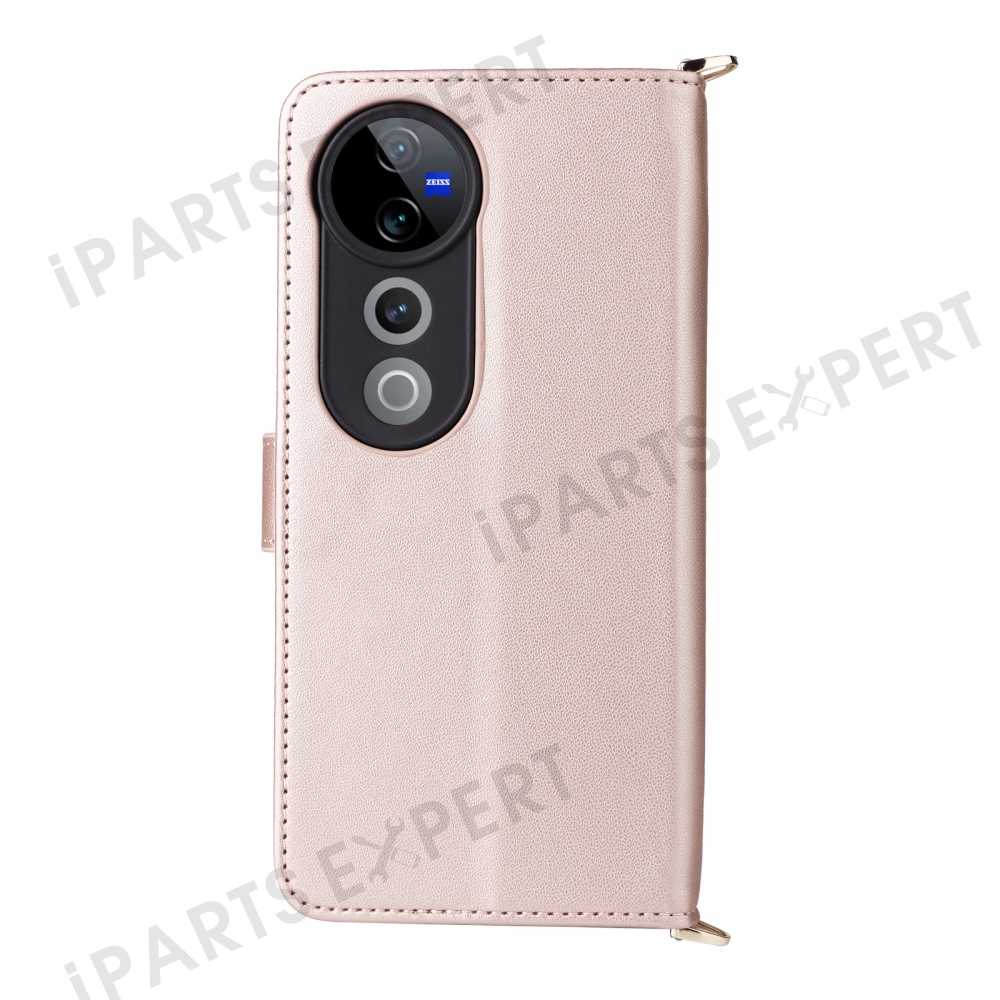 Wallet Phone Case for vivo T3 Ultra 5G / V40 Pro 5G / V40 5G / S19 Pro 5G Leather Cover with Shoulder / Wrist Strap - Pink
