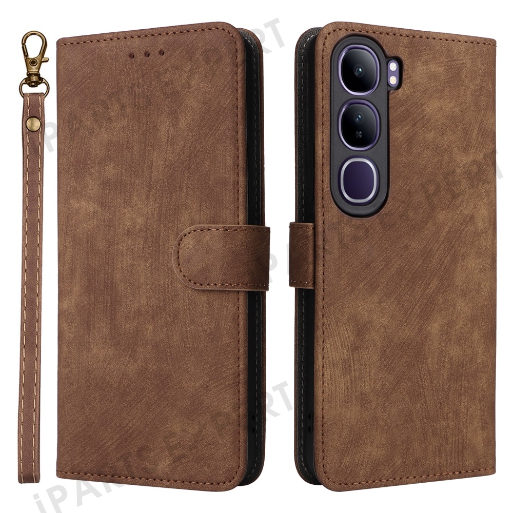 Wallet Phone Case for vivo V40 SE 5G 80W / V40 Lite (Indonesia) 4G / 5G RFID Blocking PU Leather Cover Stand View - Brown