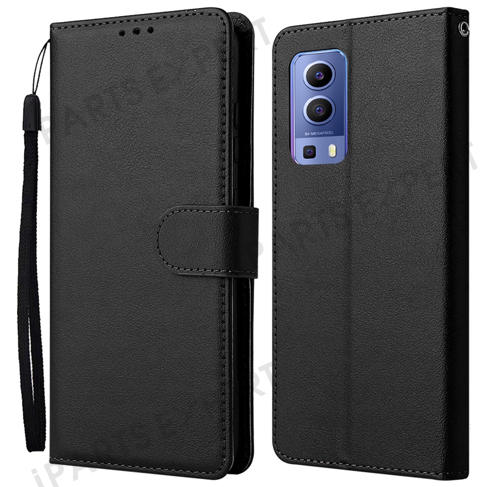 Wallet Phone Case for vivo Y75s 5G / T1x 5G / Y72 5G / iQOO Z3 / Y53s 4G / Y53s / Y52 5G PU Leather Cover - Black