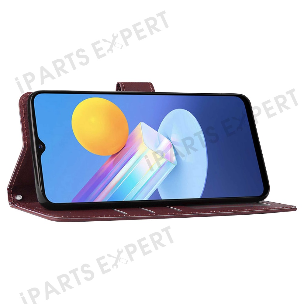Wallet Phone Case for vivo Y75s 5G / T1x 5G / Y72 5G / iQOO Z3 / Y53s 4G / Y53s / Y52 5G PU Leather Cover - Wine Red