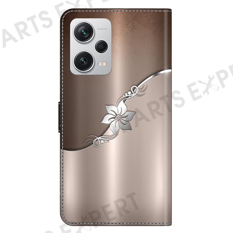 Wallet Phone Case for Xiaomi Redmi Note 12 Pro+ 5G Case Pattern Printing Leather Flip Cover - Silver Flower