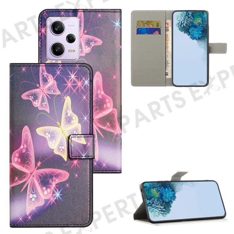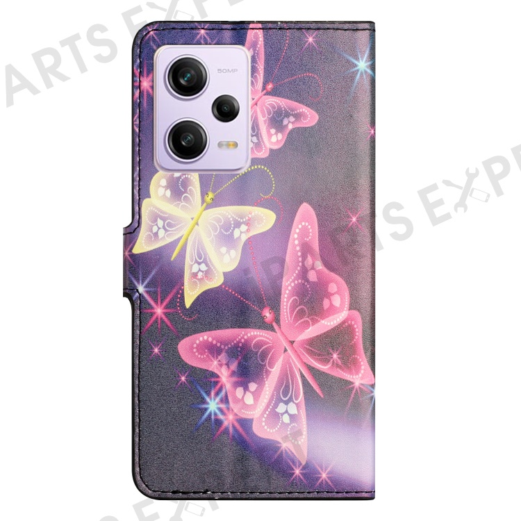 Wallet Phone Case for Xiaomi Redmi Note 12 Pro 5G / Note 12 Pro Speed 5G / Poco X5 Pro 5G , Pattern Printing PU Leather Stand Cover - Sparkle Butterflies