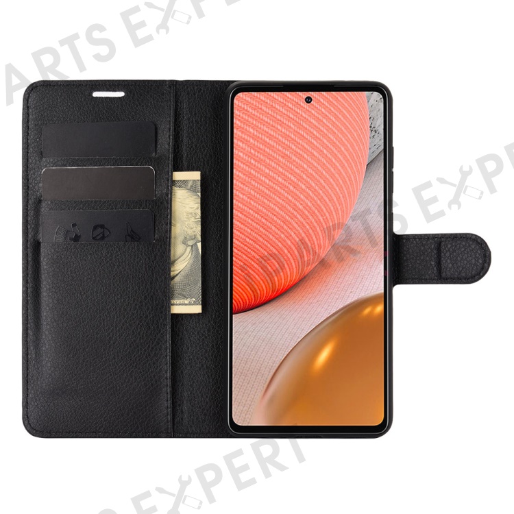 Wallet Stand Design Litchi Texture Leather Phone Cover for Samsung Galaxy A72 4G / 5G - Black