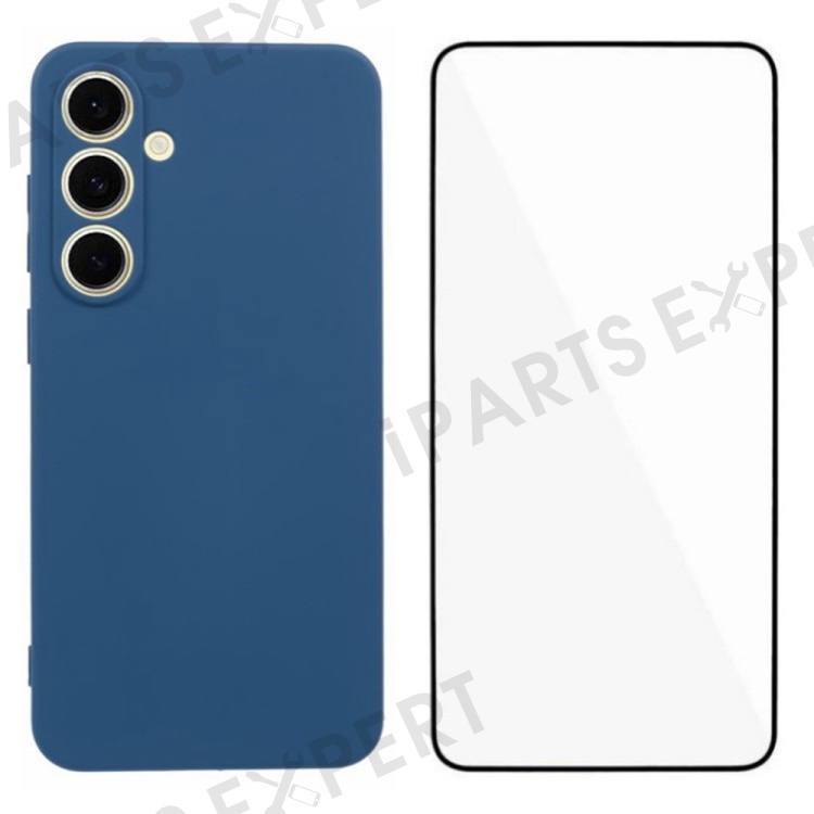 WANLONFENG RB2 Series for Samsung Galaxy S24 FE Case TPU Phone Cover with Screen Protector - Sapphire