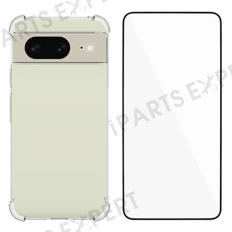 WANLONFENG WL Series for Google Pixel 8 Case 2.0mm Clear TPU Cover with Tempered Glass Film (Big Lens Hole)