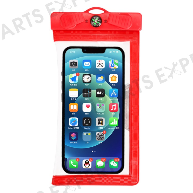 Waterproof Phone Case for Phone within 7.5'' ABS+PVC Screen Touchable IPX8 Phone Water Protector Pouch with Compass - Red