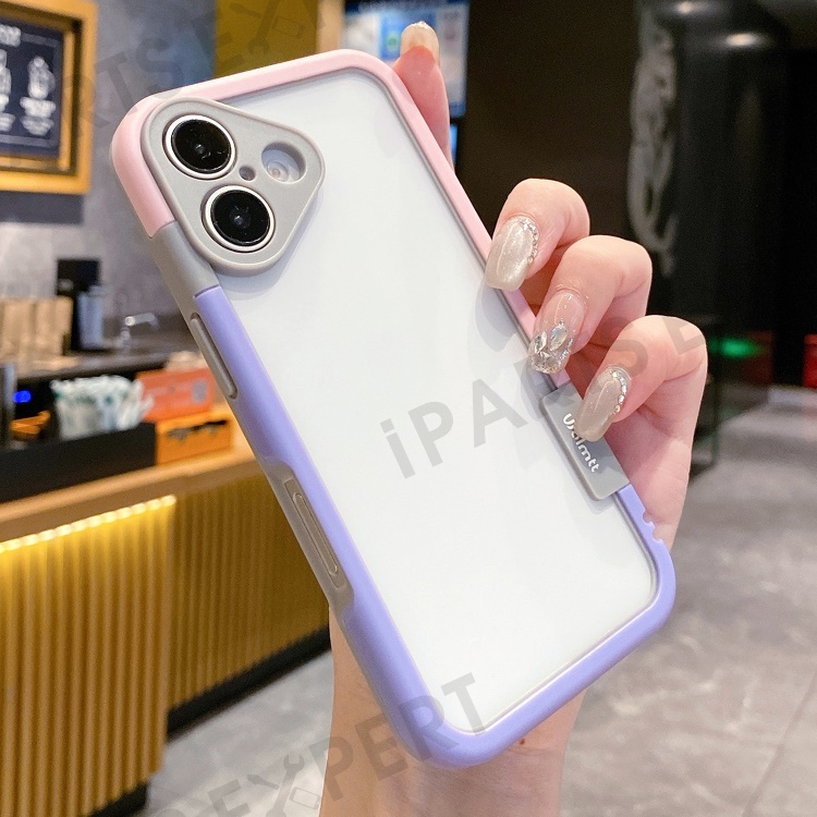 WOLMTT For iPhone 16 Plus Case PC+TPU Transparent Phone Cover Dual Color Frame Aesthetic Design - Purple+Pink