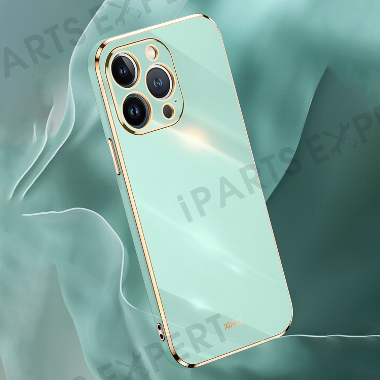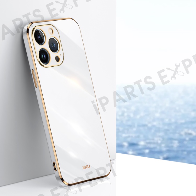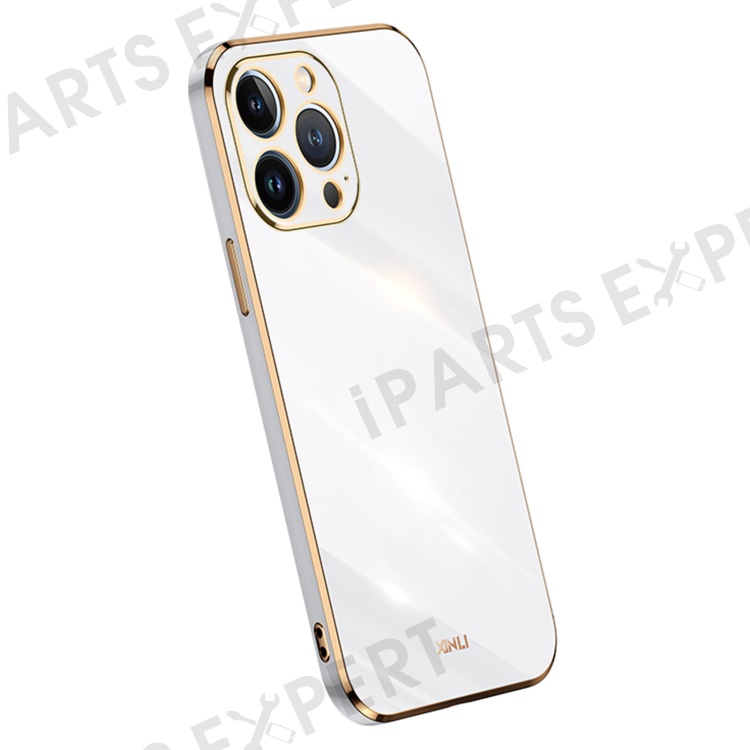XINLI For iPhone 14 Pro Max Anti-fall Phone Case Electroplating Golden Edge Precise Lens Cutout TPU Phone Cover - White