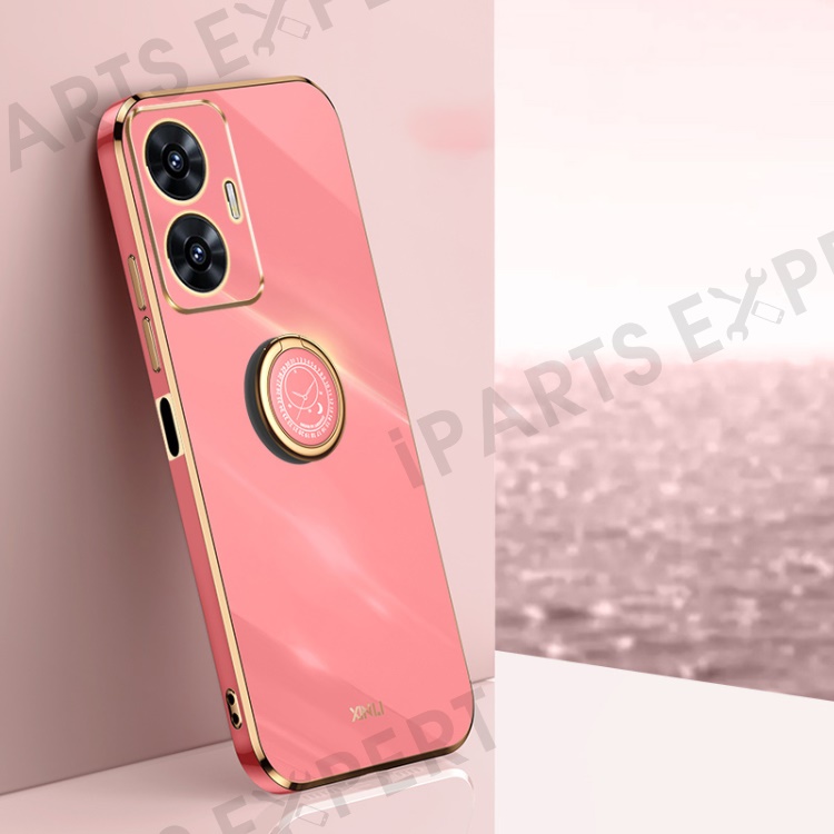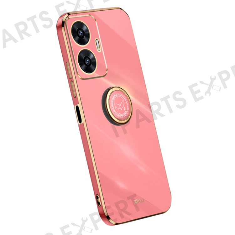 XINLI For Realme C55 4G Electroplating Phone Case TPU Cover with Ring Kickstand - Red