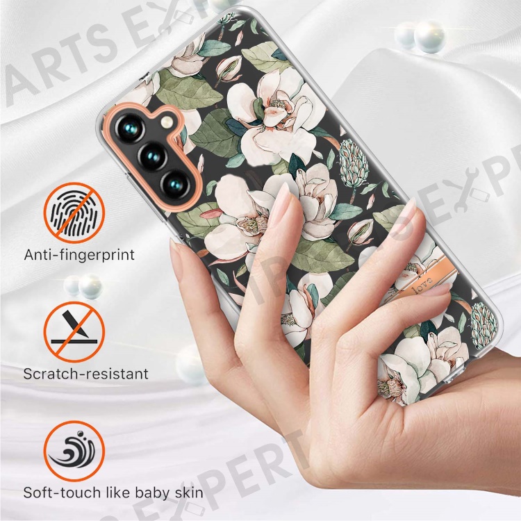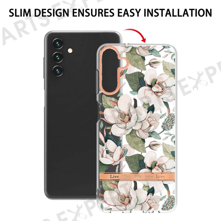 YB IMD-8 Series For Samsung Galaxy A34 5G Protective Shell, Electroplating Soft TPU Case Flower Pattern IML IMD Phone Cover - HC001 Green Gardenia