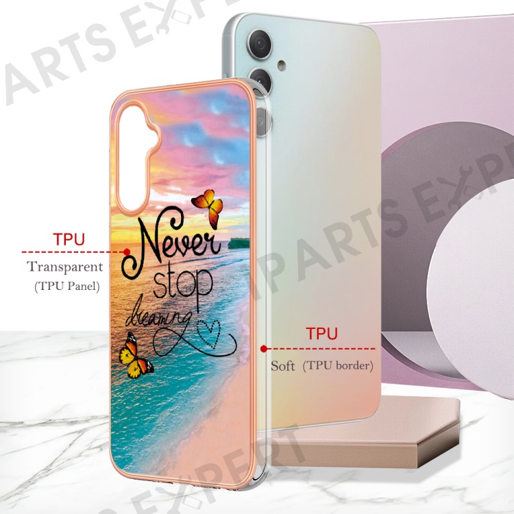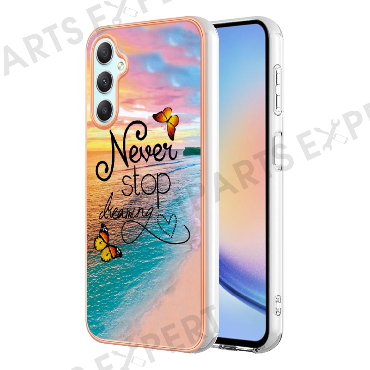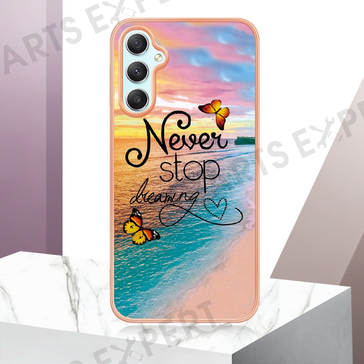 YB IMD Series-1 TPU Phone Case for Samsung Galaxy A24 4G (162.1 x 77.6 x 8.3mm) Marble Floral Pattern IMD Cover - Never Stop Dreaming