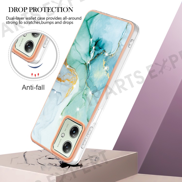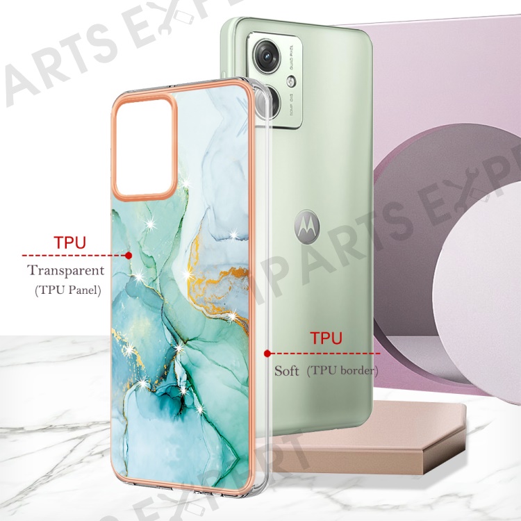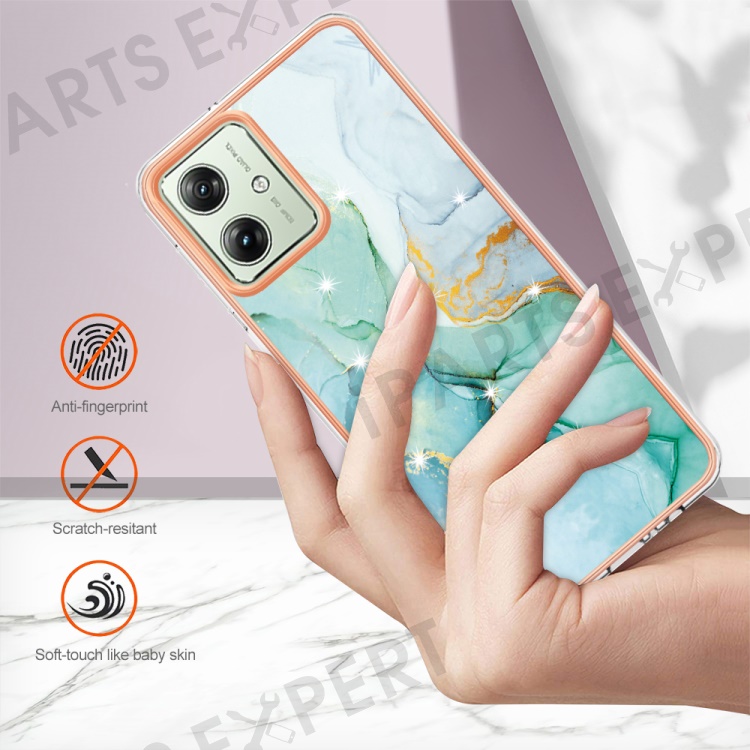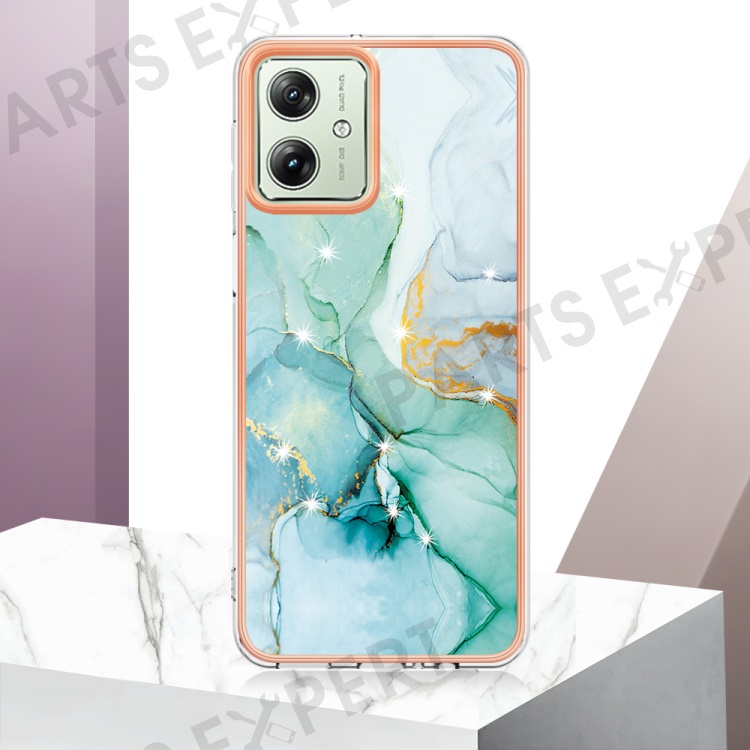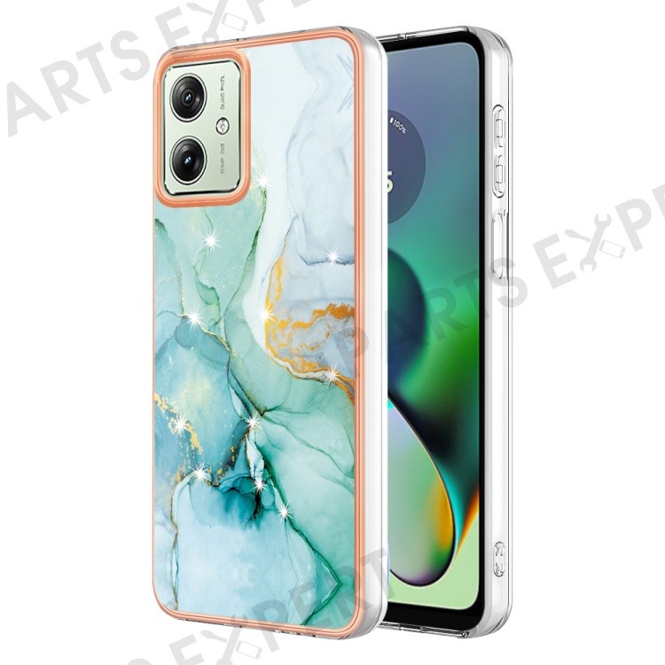 For Motorola Moto G54 5G TPU Case with IMD Marble Pattern Electroplated Back Cover - Green 003
