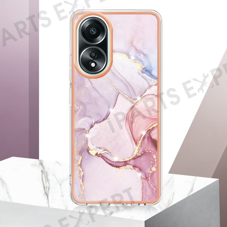 For Oppo A58 4G TPU Case with IMD Marble Pattern Electroplated Back Cover - Rose Gold 005