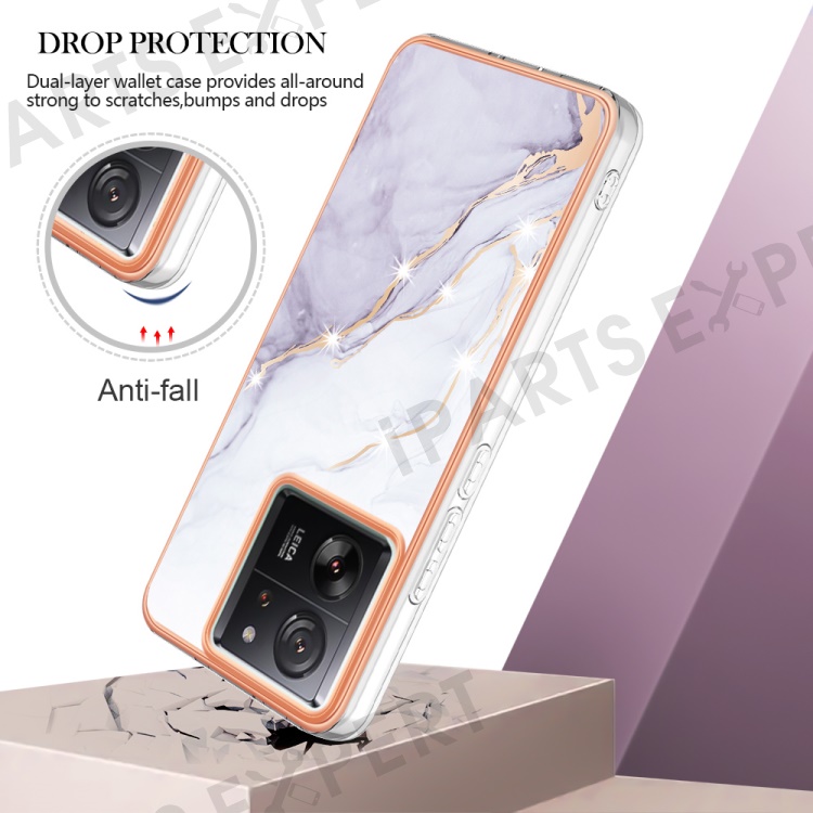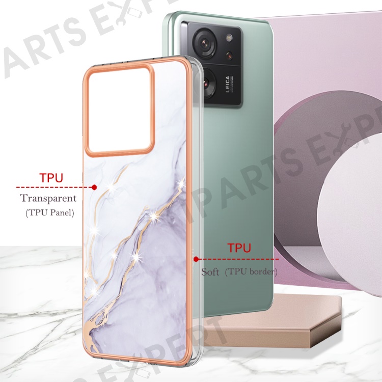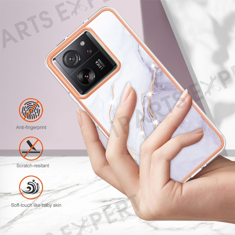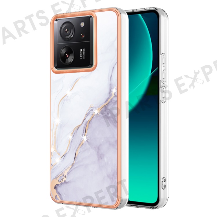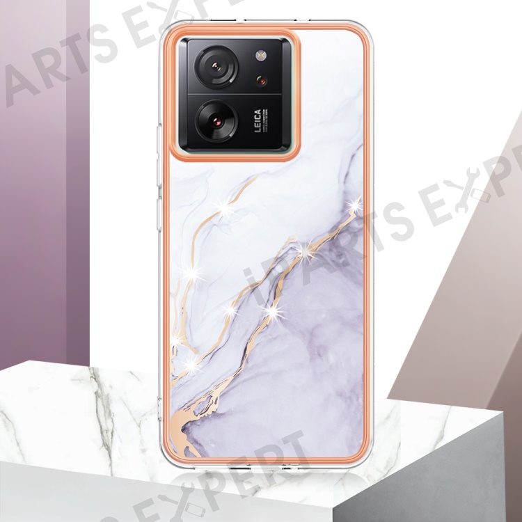 For Xiaomi 13T / 13T Pro / Redmi K60 Ultra TPU Case with IMD Marble Pattern Electroplated Back Cover - White 006