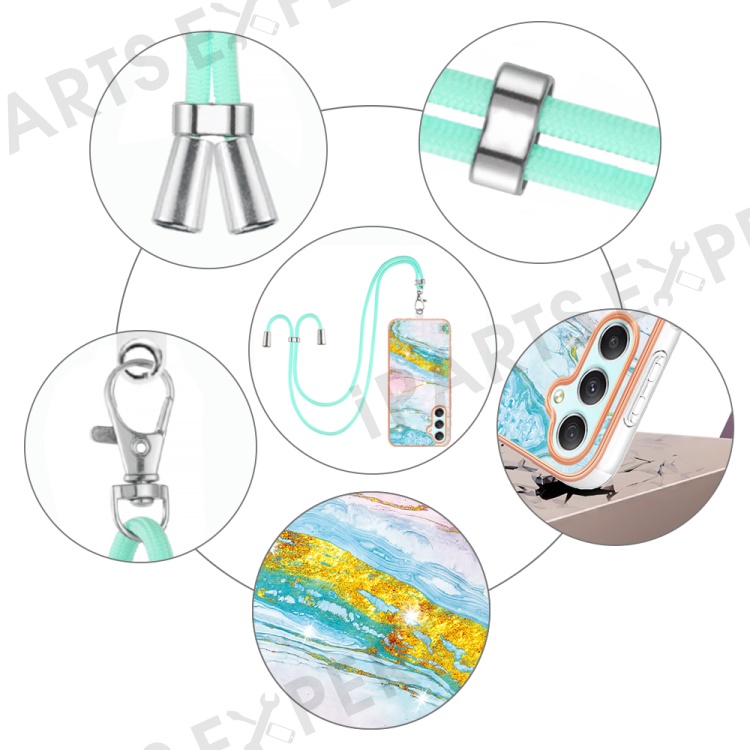 For Samsung Galaxy A25 5G (Global) (161.0 x 76.5 x 8.3mm) Case with Shoulder Strap IMD IML Flower Pattern TPU Back Cover - Green 004