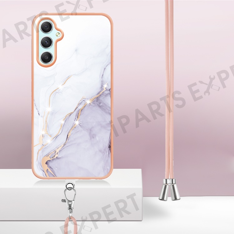 For Samsung Galaxy A25 5G (Global) (161.0 x 76.5 x 8.3mm) Case with Shoulder Strap IMD IML Flower Pattern TPU Back Cover - White 006