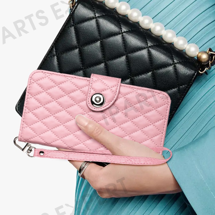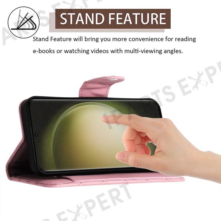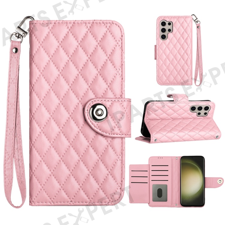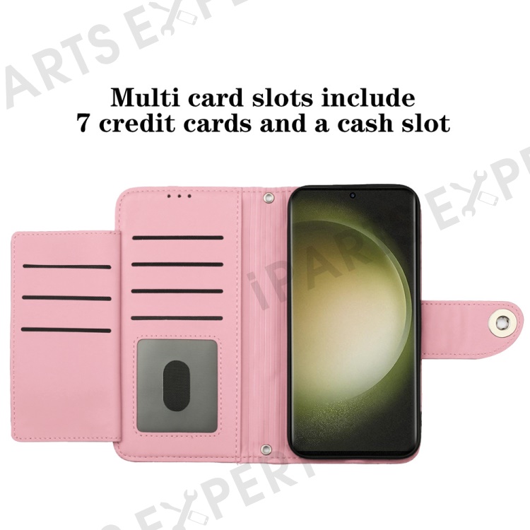 For Samsung Galaxy S24 Ultra Leather Case Phone Stand Cover with 7 Card Slots and Hand Strap - Pink