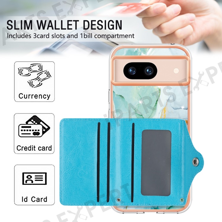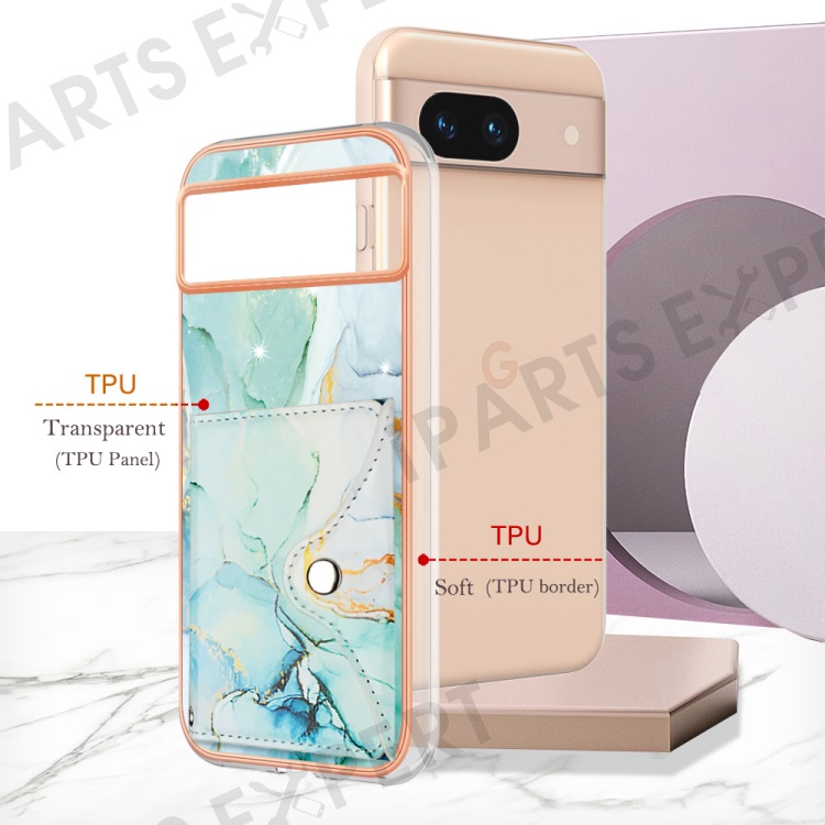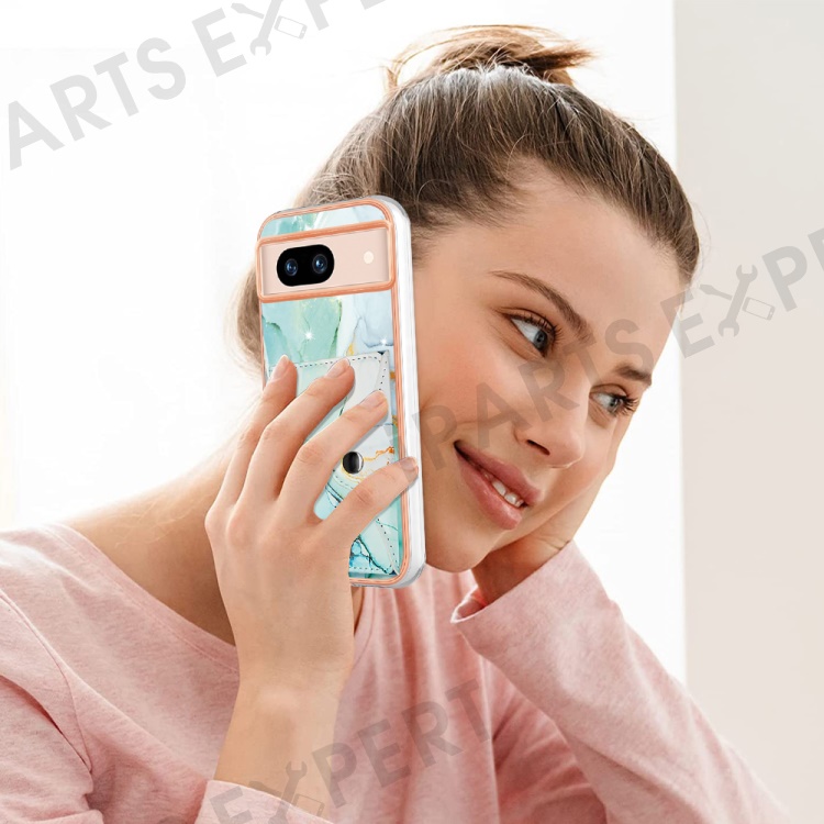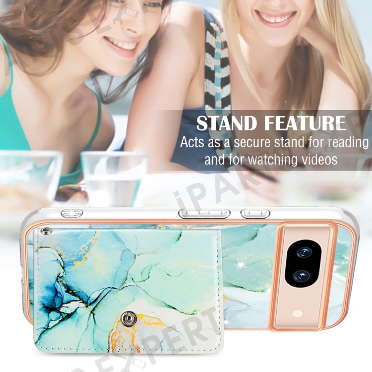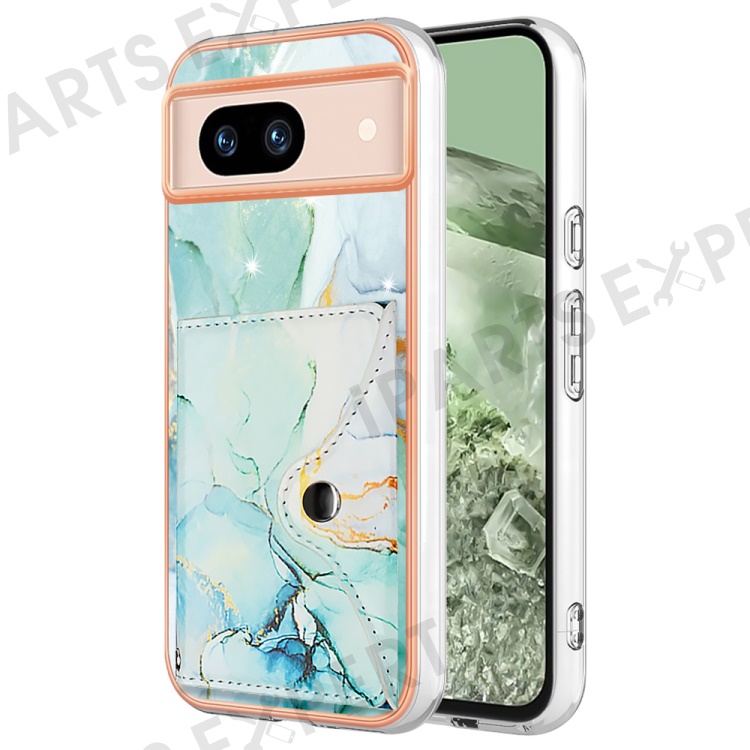 YB Leather Coating Series-9 for Google Pixel 8a Case IMD Pattern Card Holder Kickstand Phone Cover - 003 Green
