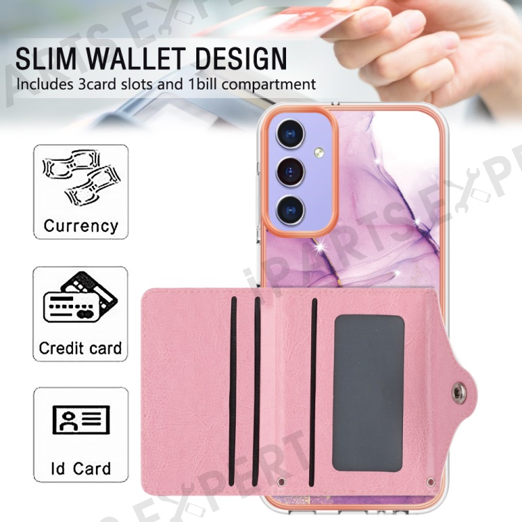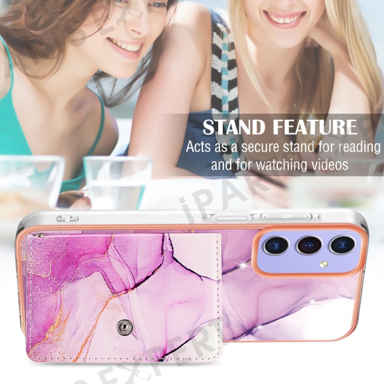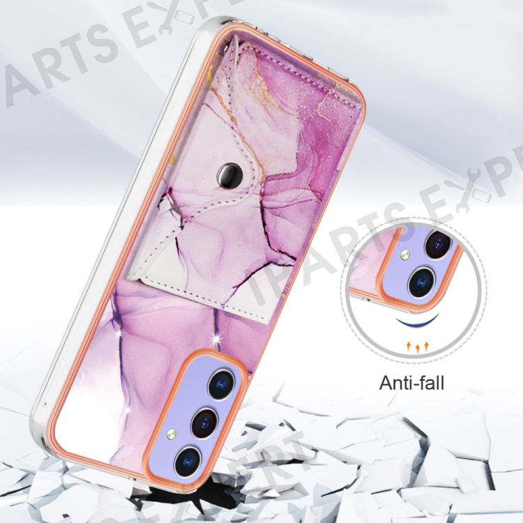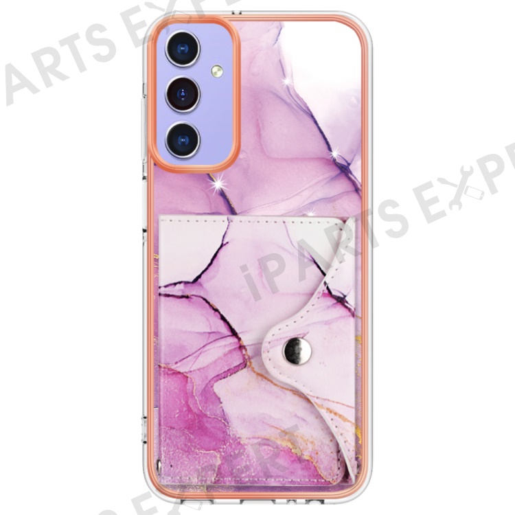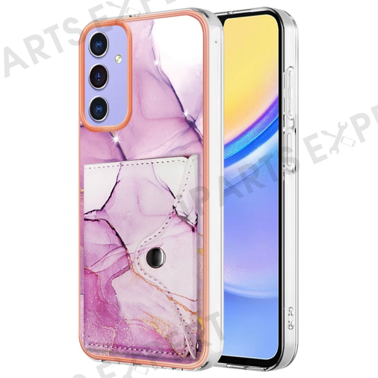YB Leather Coating Series-9 for Samsung Galaxy A15 5G Case Card Slots IMD Marble Pattern Phone Cover - 001 Purple