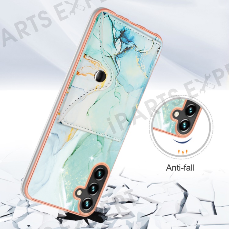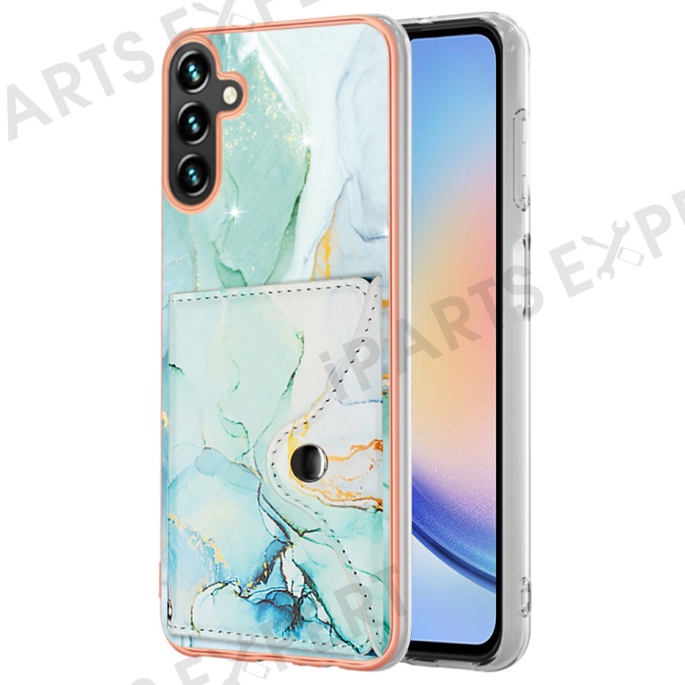 YB Leather Coating Series-9 for Samsung Galaxy A34 5G Case Card Slots IMD Leather+TPU Kickstand Cover - 003 Green