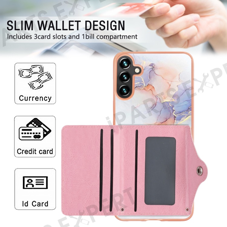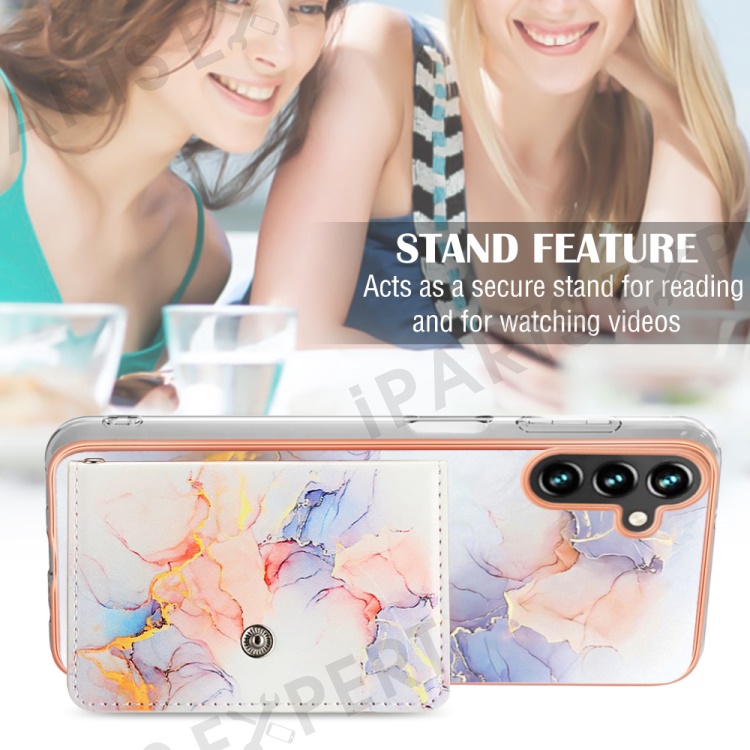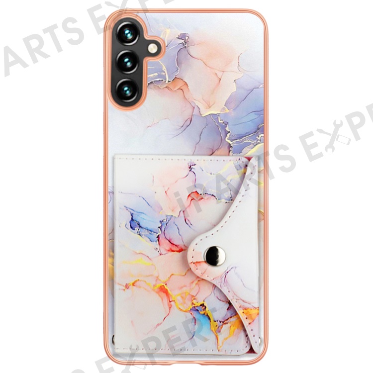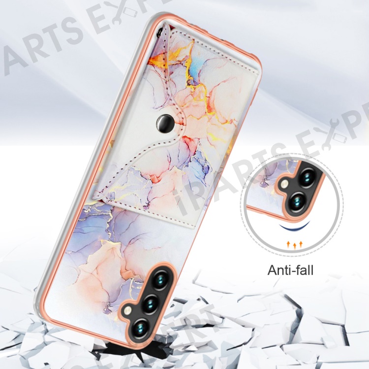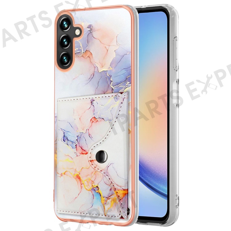 YB Leather Coating Series-9 for Samsung Galaxy A34 5G Case Card Slots IMD Leather+TPU Kickstand Cover - 004 Marble White