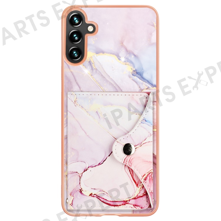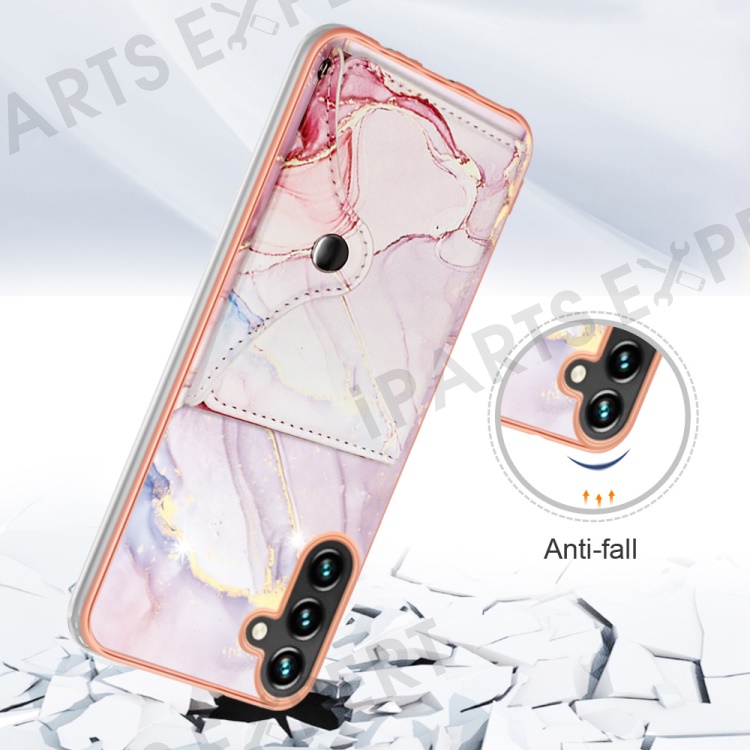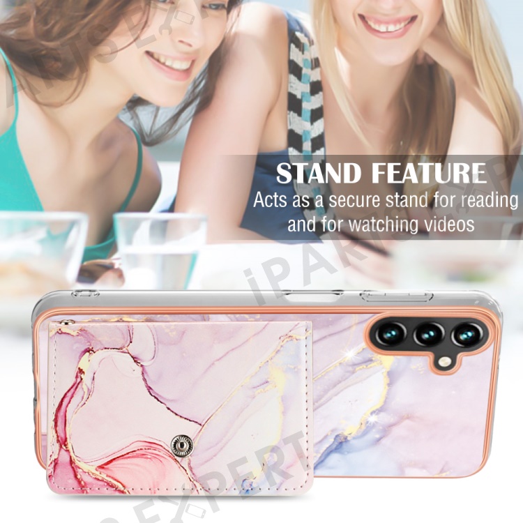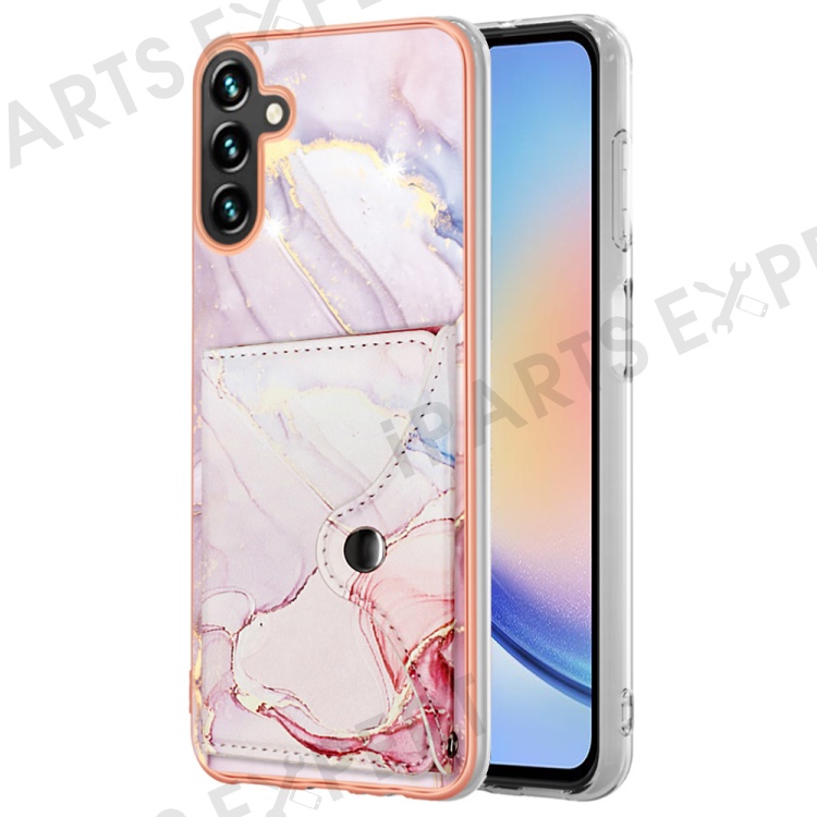 YB Leather Coating Series-9 for Samsung Galaxy A34 5G Case Card Slots IMD Leather+TPU Kickstand Cover - 005 Rose Gold