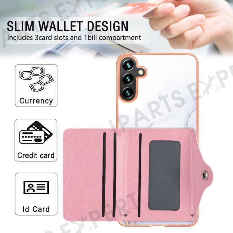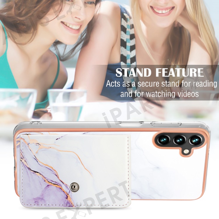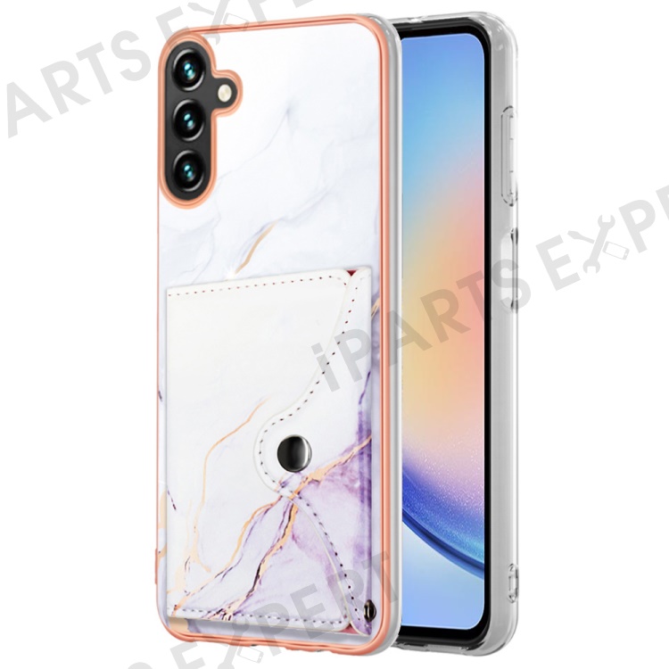 YB Leather Coating Series-9 for Samsung Galaxy A34 5G Case Card Slots IMD Leather+TPU Kickstand Cover - 006 White Purple