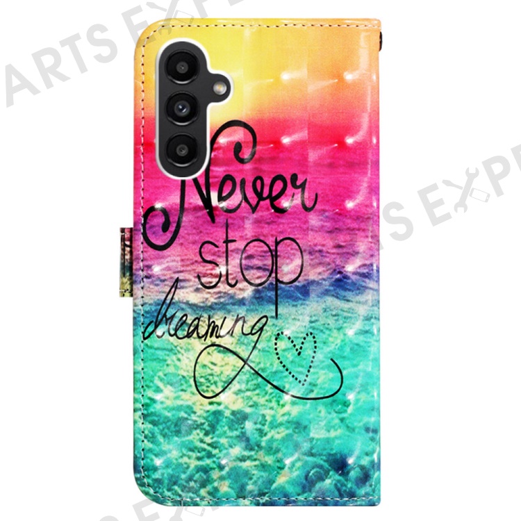 For Samsung Galaxy A24 4G (162.1mm) Leather Case 3D Pattern Printing Wallet Stand Mobile Cover with Strap - Never Stop Dreaming