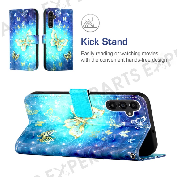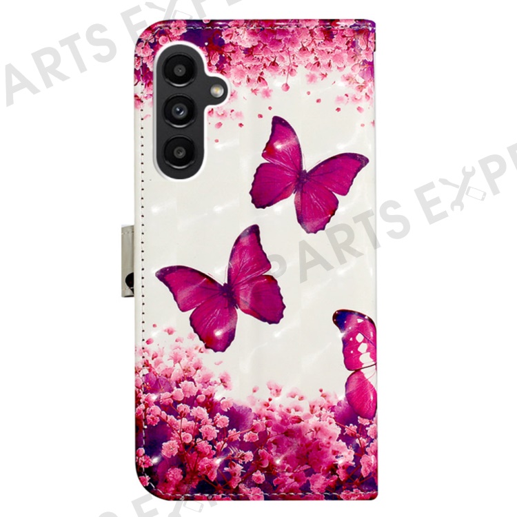 For Samsung Galaxy A24 4G (162.1mm) Leather Case 3D Pattern Printing Wallet Stand Mobile Cover with Strap - Rose Butterflies