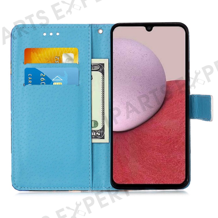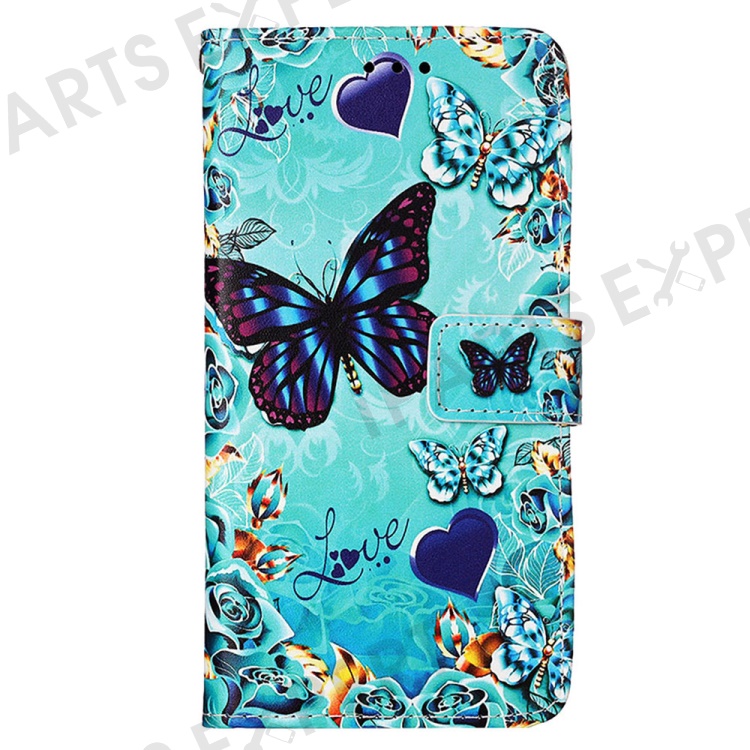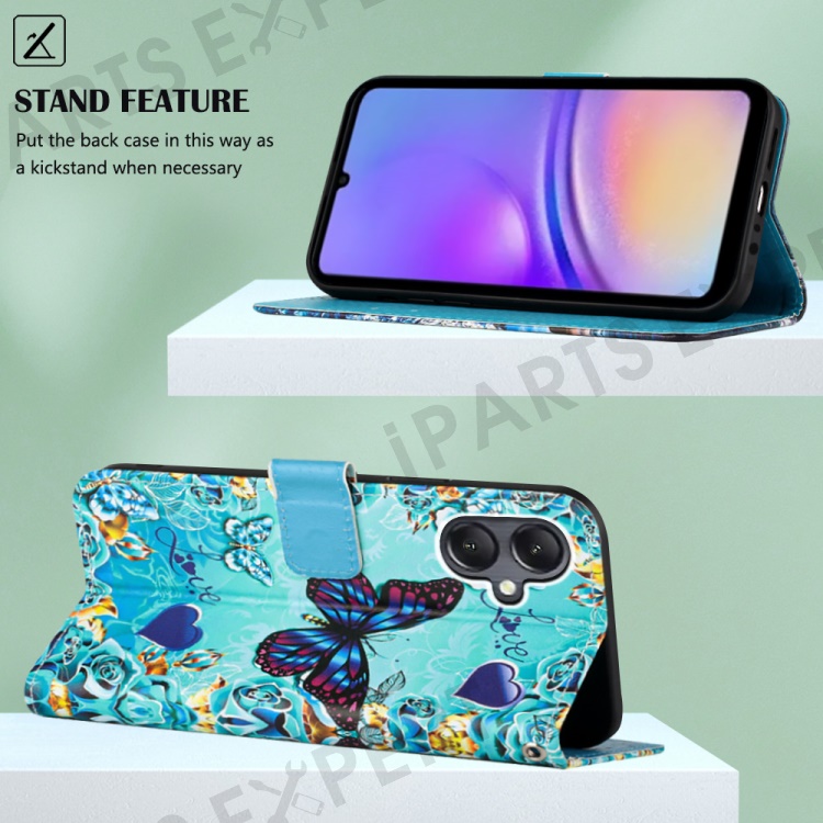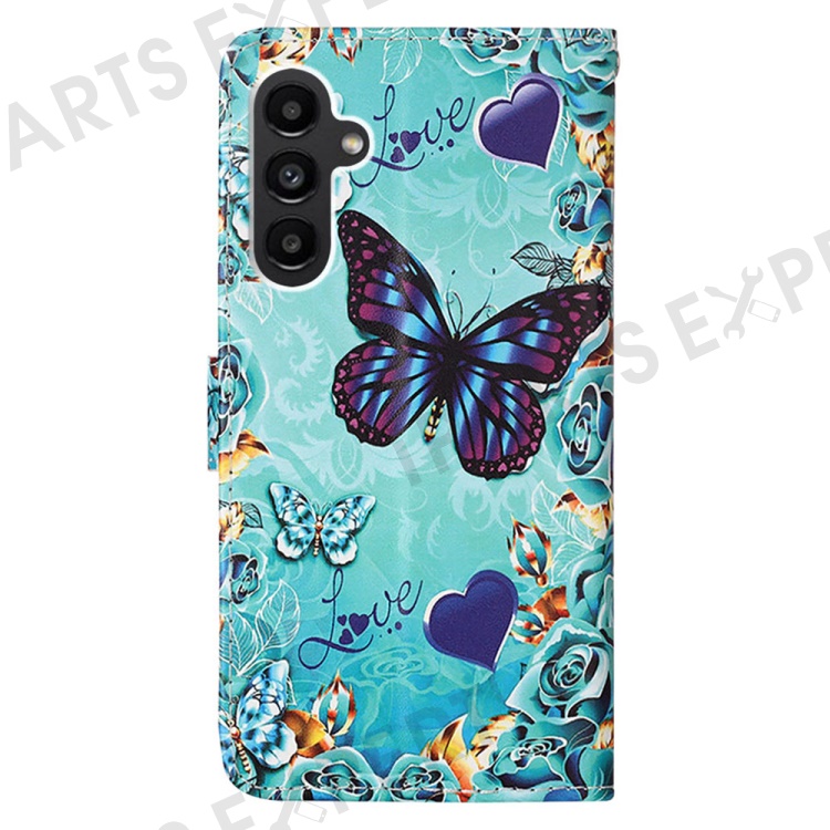 For Samsung Galaxy A15 4G Leather Case with Strap and Card Holder Pattern Printing Phone Stand Cover - Butterfly and Heart