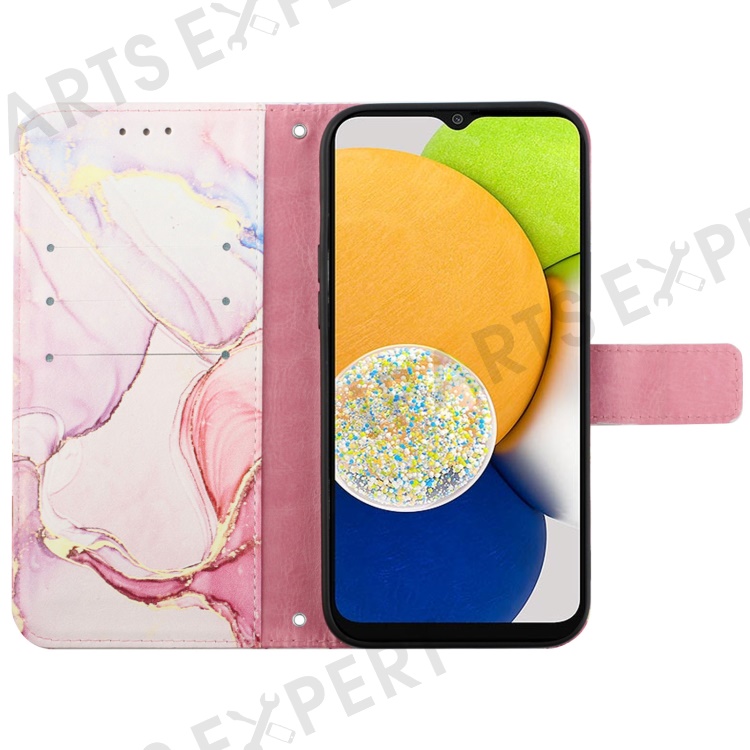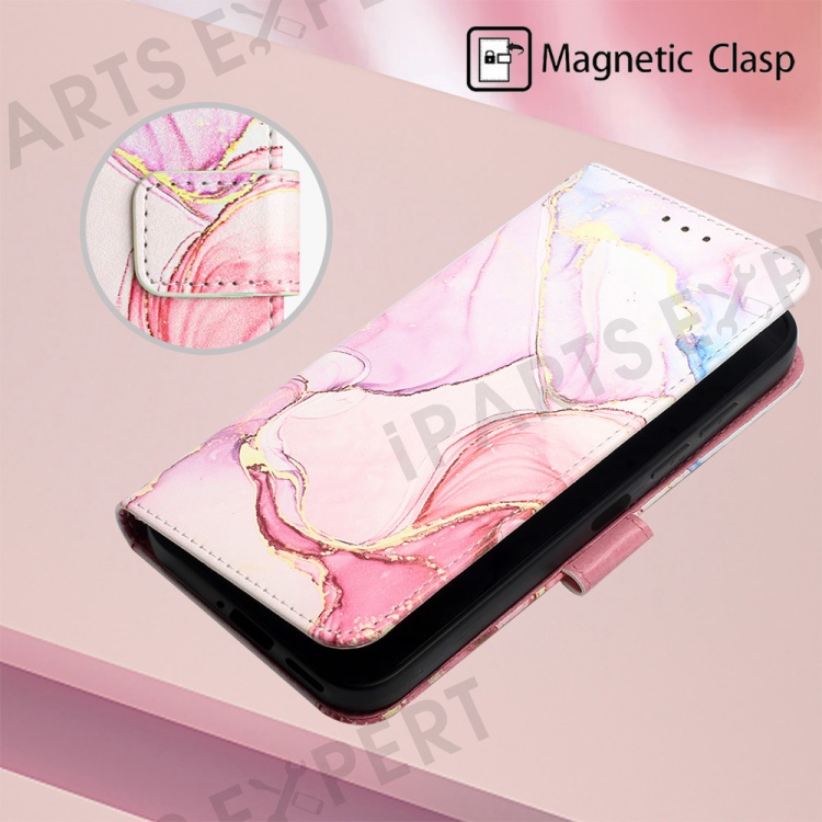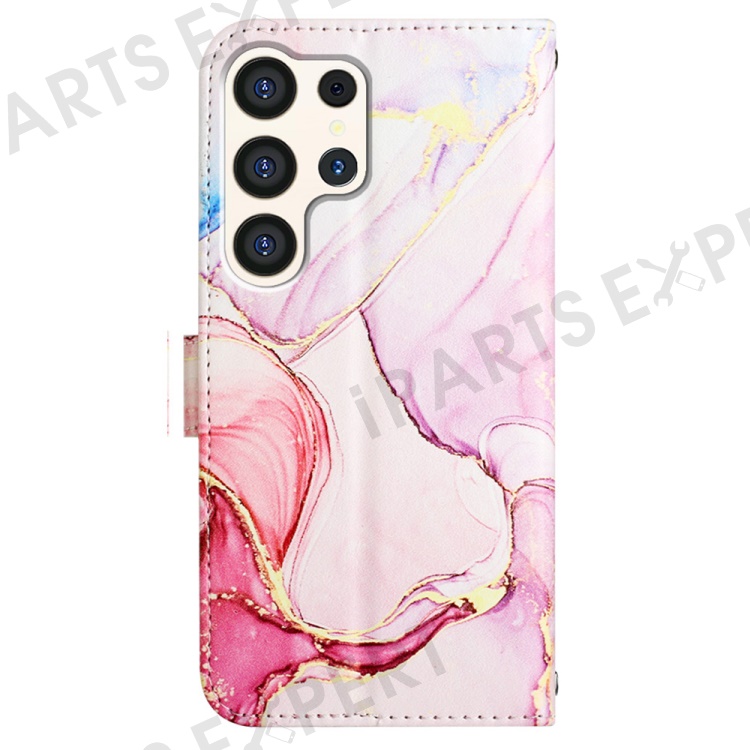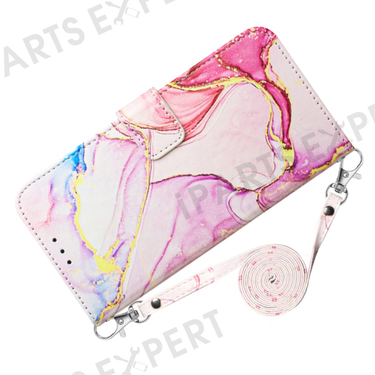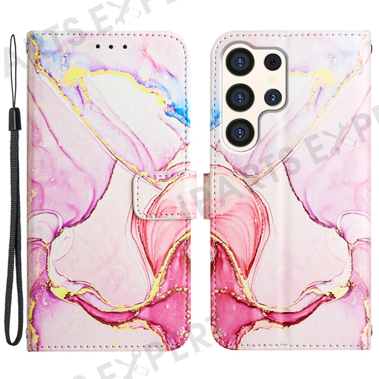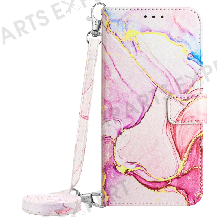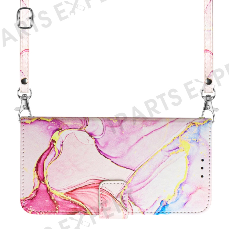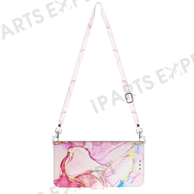 For Samsung Galaxy S24 Ultra Leather Case with Shoulder Strap Marble Pattern Phone Stand Cover - Rose Gold LS005