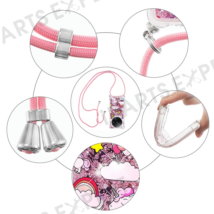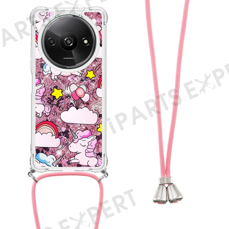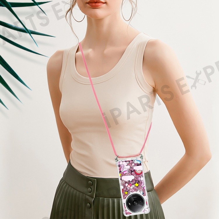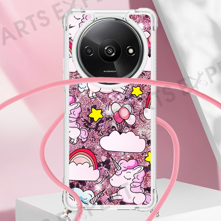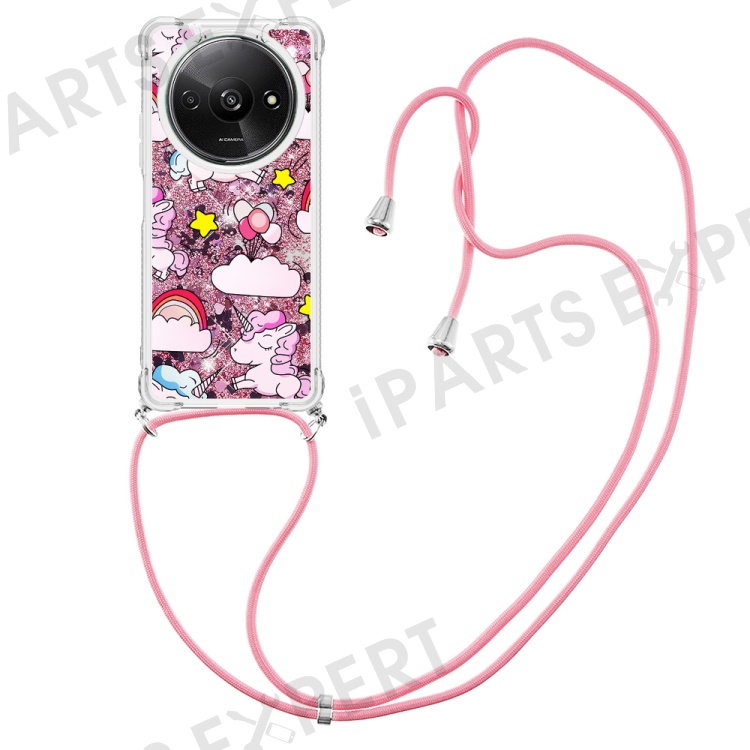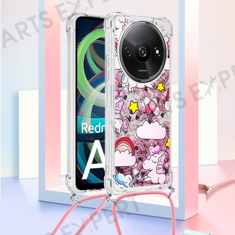 For Xiaomi Redmi A3 4G / Poco C61 4G TPU Case with Lanyard Quicksand Pattern Print Phone Cover - Cute Horse and Clouds