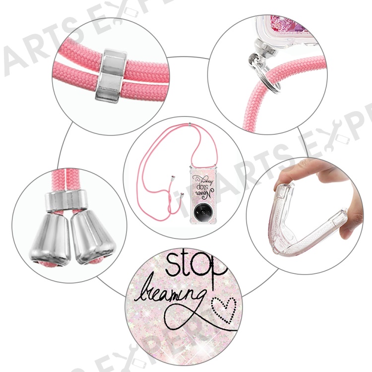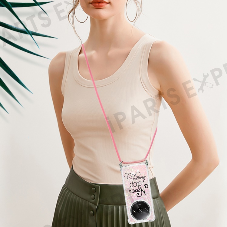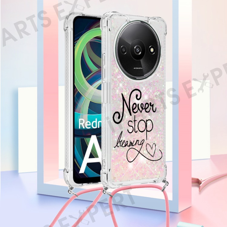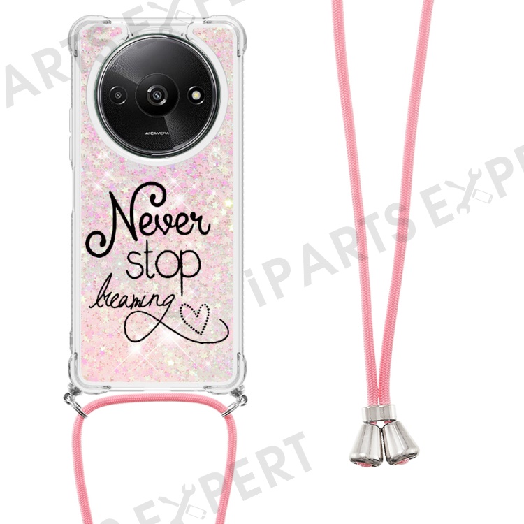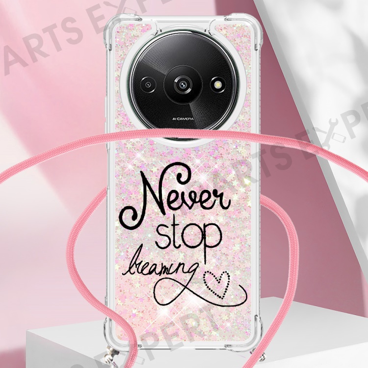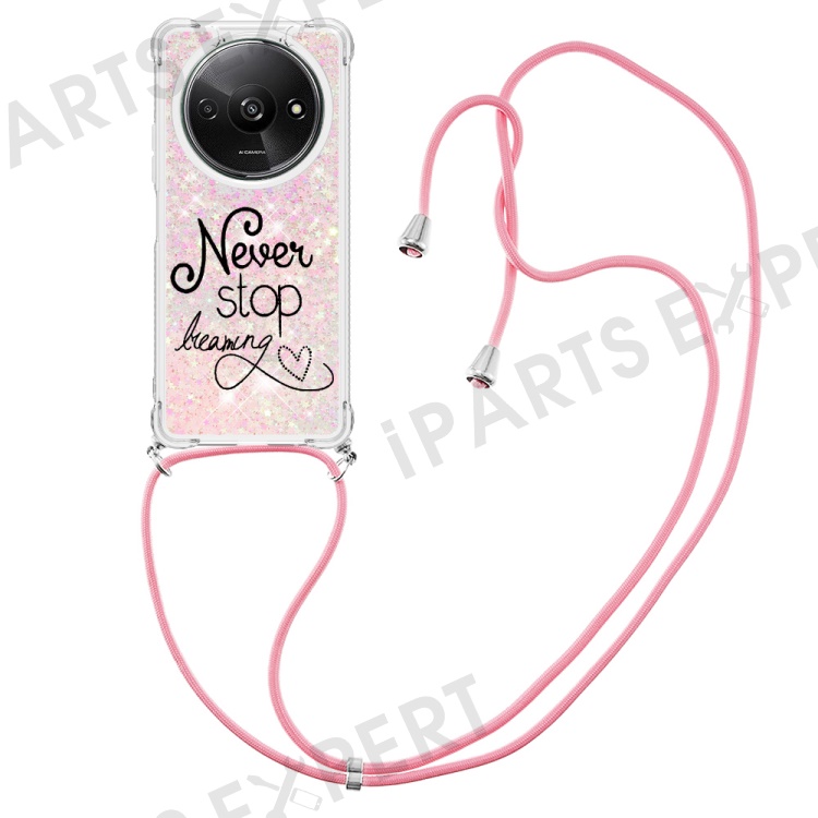 For Xiaomi Redmi A3 4G / Poco C61 4G TPU Case with Lanyard Quicksand Pattern Print Phone Cover - Never Stop Dreaming