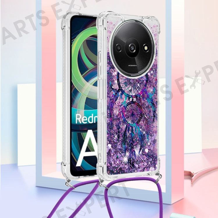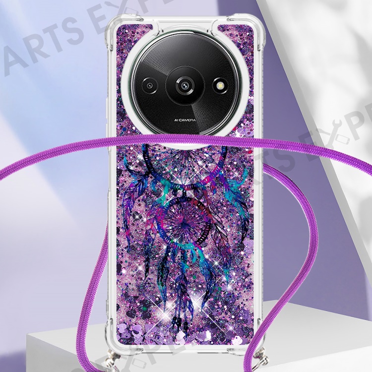 For Xiaomi Redmi A3 4G / Poco C61 4G TPU Case with Lanyard Quicksand Pattern Print Phone Cover - Wind Chimes