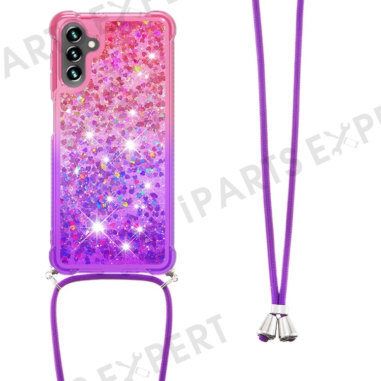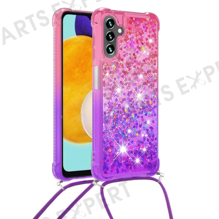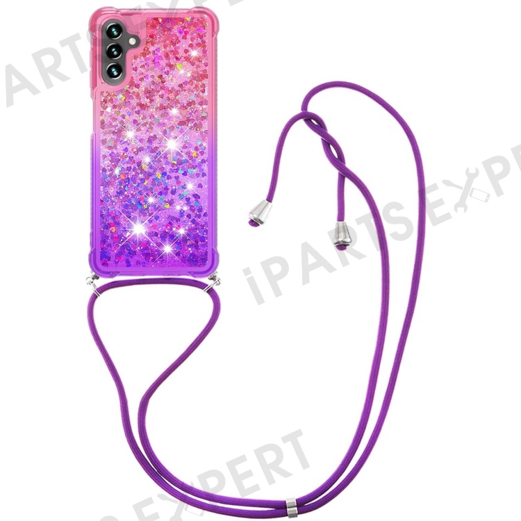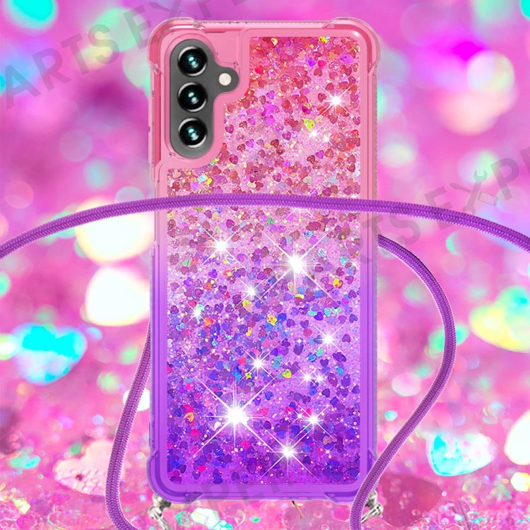 For Samsung Galaxy A34 5G TPU Case Gradiant Quicksand Shockproof Cover with Lanyard - Pink / Purple