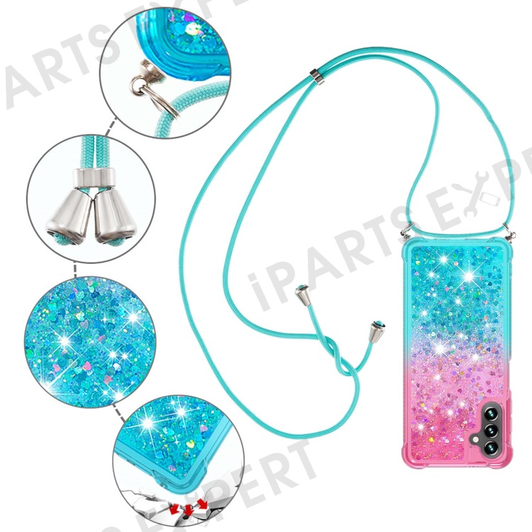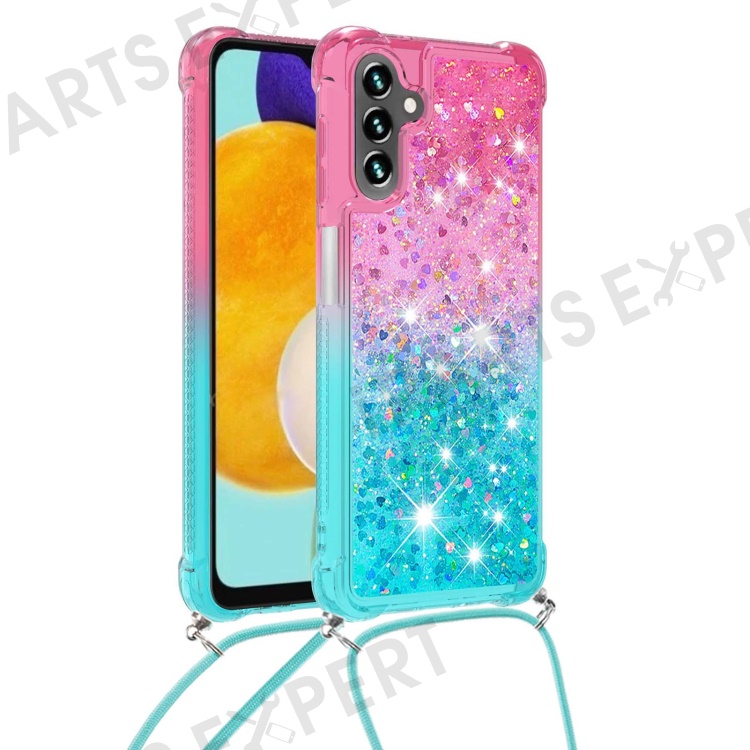 For Samsung Galaxy A34 5G TPU Case Gradiant Quicksand Shockproof Cover with Lanyard - Pink / Sky Blue