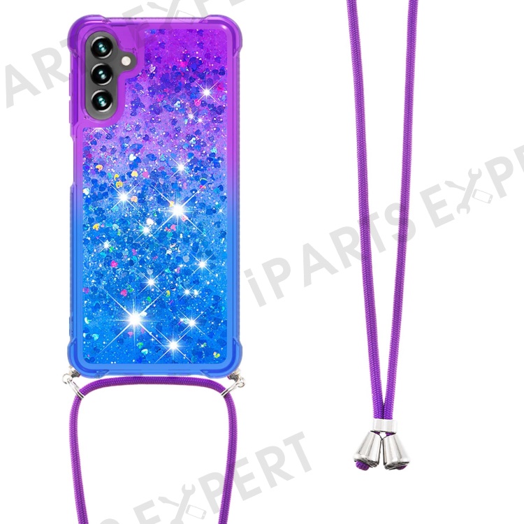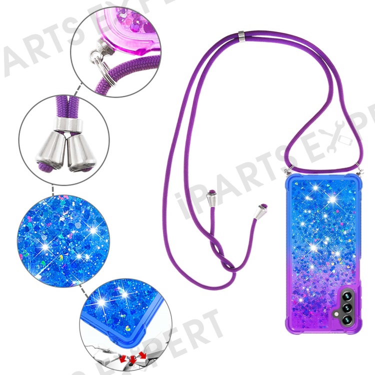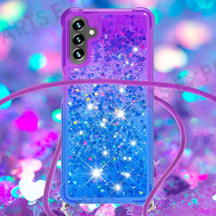 For Samsung Galaxy A34 5G TPU Case Gradiant Quicksand Shockproof Cover with Lanyard - Purple / Sky Blue